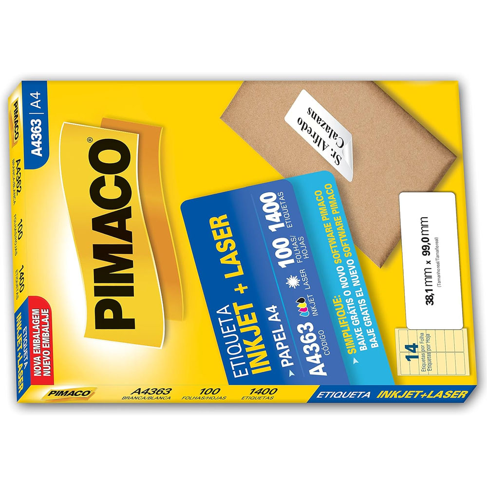 “Etiqueta Laser & Inkjet A4 38,1×99 100 Folhas Pimaco A4363