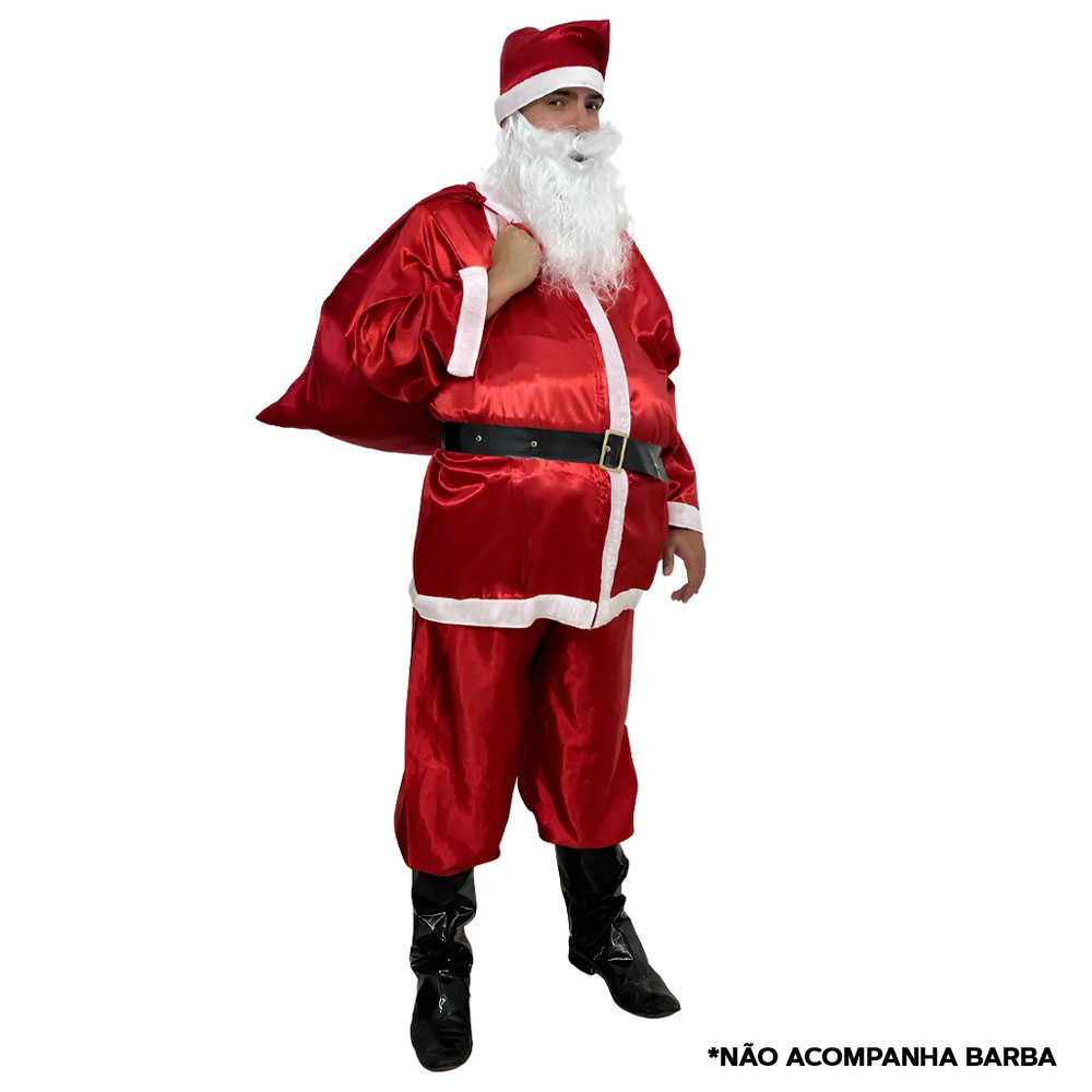 Fantasia Adulto Papai Noel Kit c/ 7pçs Tam Único Natal
