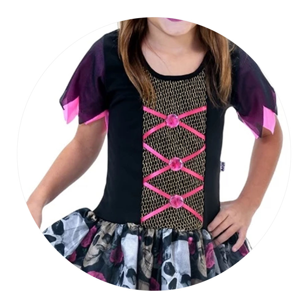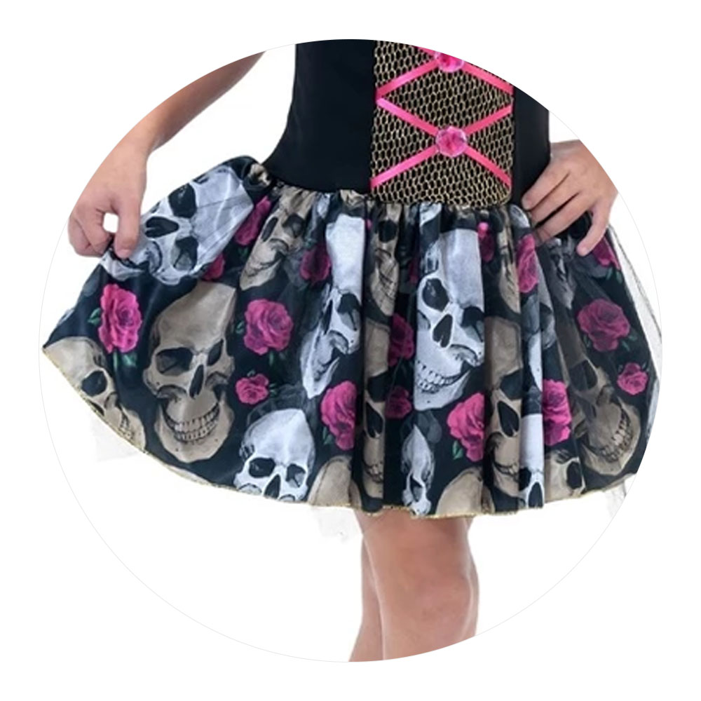 Fantasia Inf Vestido Bruxinha Caveiras Tam G Halloween