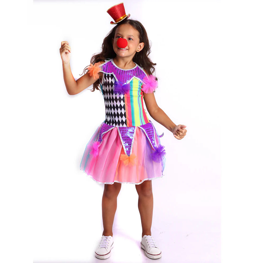 Seja a atração da festa e encante a todos com a Fantasia Infantil Palhaça Colombina Passista!