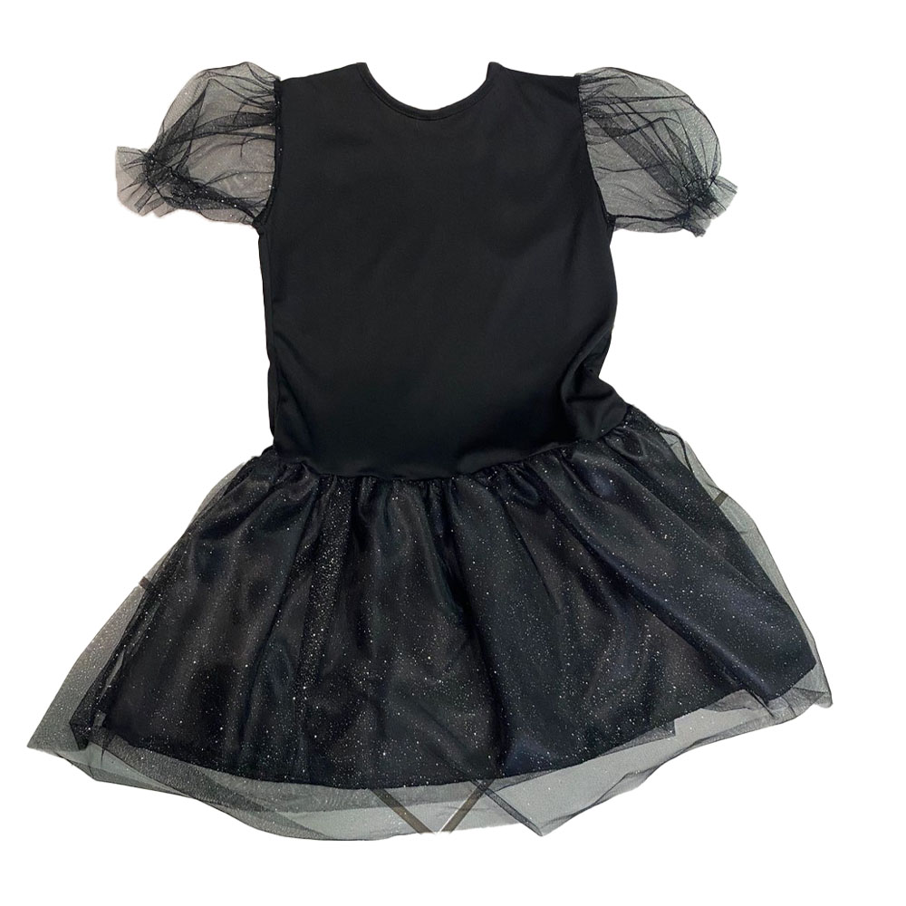Fantasia Infantil Wandinha Preto com Glitter Halloween