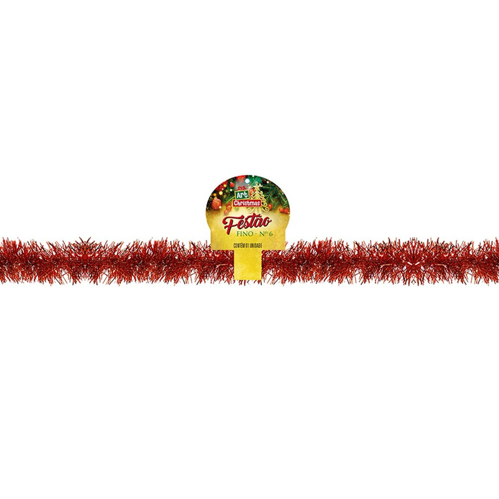 Festão Decorativo Natalino 6cm x 2m Vermelho Natal Zein