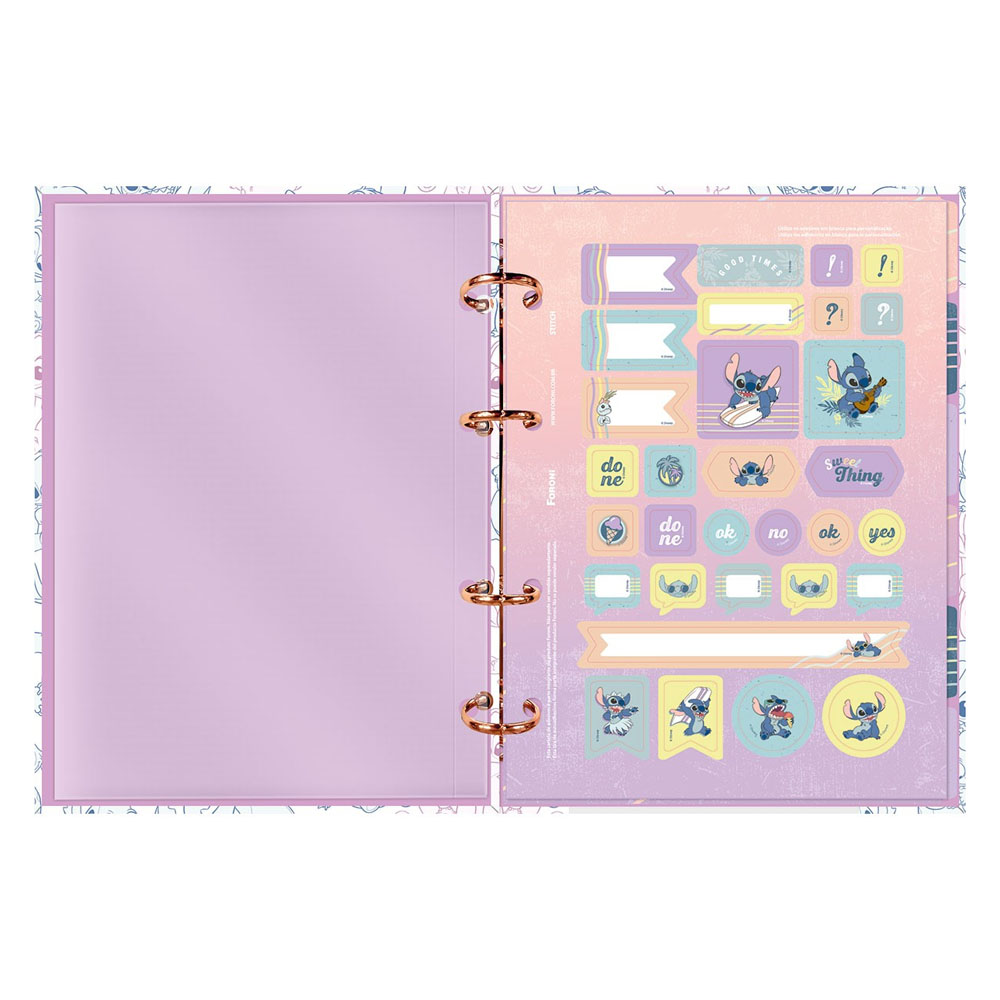O Stitch (também conhecido como Experimento 626) é um dos personagens mais queridos e divertidos do universo da Disney. O Caderno Argolado Sem Lombo busca retratar o personagem no mundo das redes sociais, com elementos e cores características em sua composição.