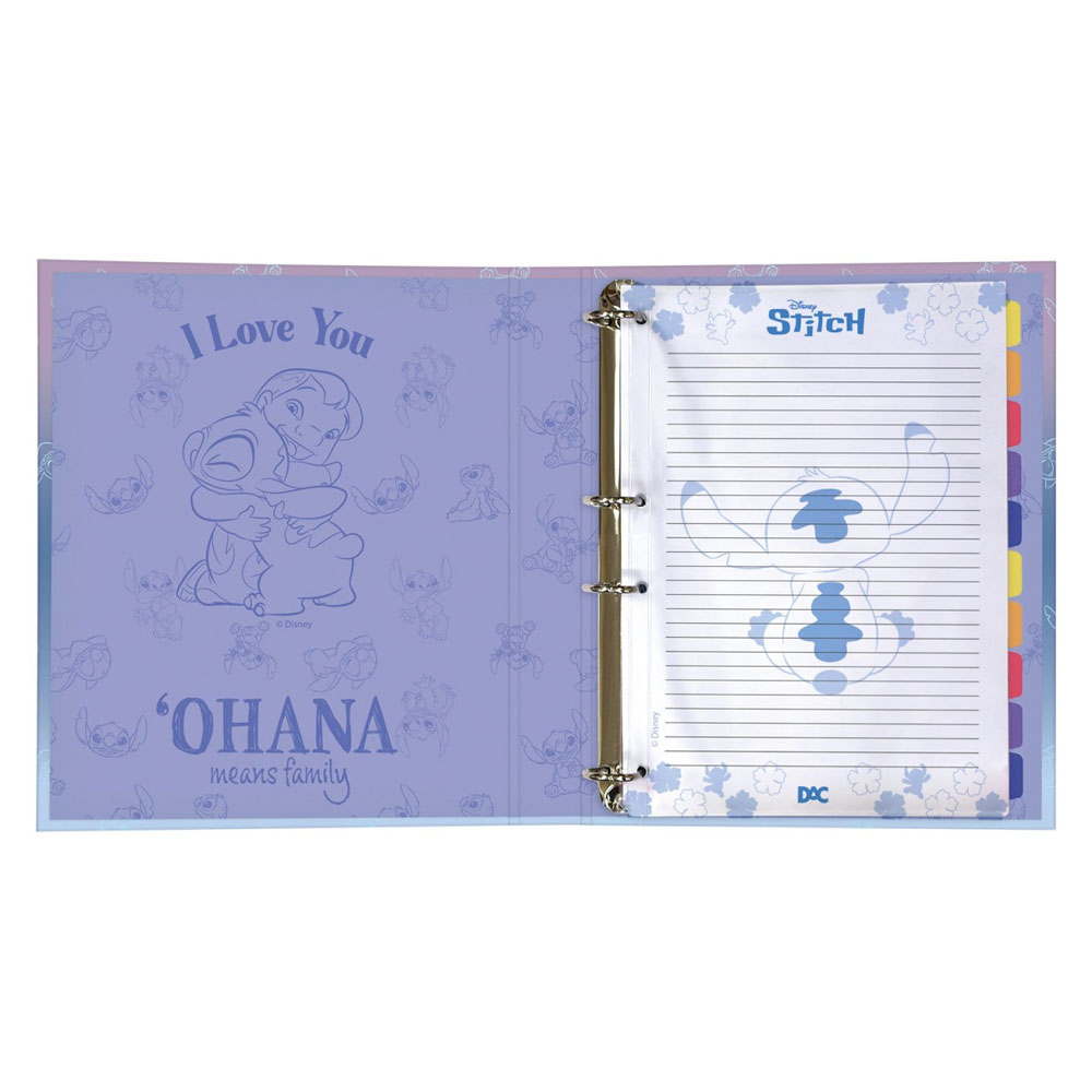 O Fichário Colegial do Stitch com fechamento em Elástico é o item perfeito para suas atividades, ideal para estimular a organização dos estudos diários e alcançar as metas e objetivos sem perder a motivação. Cheio de versatilidade ao inserir ou retirar folhas, pois as argolas articuladas abrem, possibilitando esta ação. Contém ferragem fixa com 4 argolas, 10 divisórias e 48 folhas com gramatura de 56g.