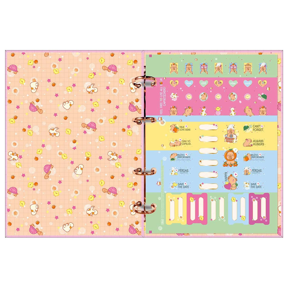 Torne suas anotações muito mais organizadas com o Caderno Argolado Cartonado Colegial Capyclub 80 Folhas da Tilibra! Com um formato compacto e leve, este caderno argolado é perfeito para quem busca praticidade ao escrever e estudar diversas matérias em um único produto. O caderno argolado Tilibra possui capa dura com detalhe metalizado e parte interna decorada, oferecendo um visual sofisticado. O produto também vem com adesivos, bolsa plástica para guardar trabalhos e anotações, jogo com seis divisórias e refil de 80 folhas pautadas e decoradas.