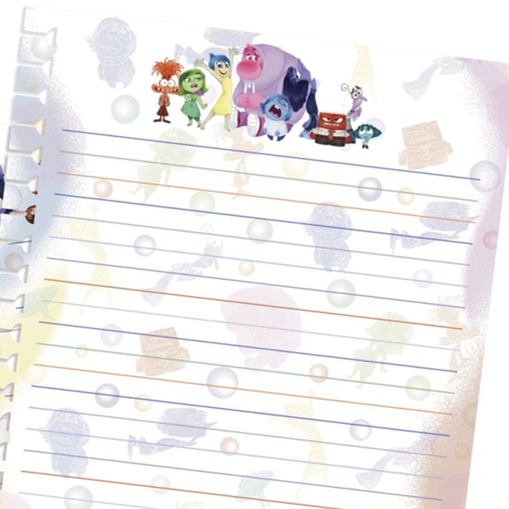 O fichário universitário Divertidamente 2 tem fechamento em botão e capa em PVC Cristal, além de ser todo estampado com os personagens.