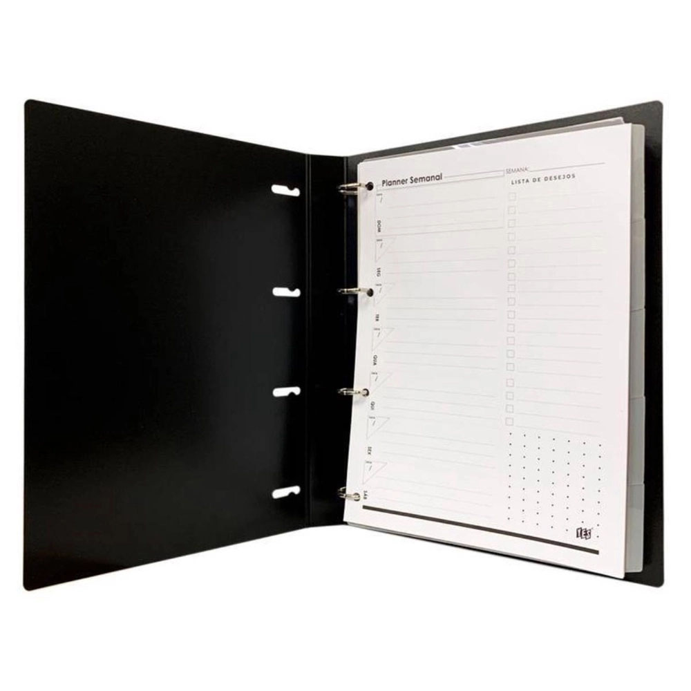 – acompanha um bloco com 96 folhas, 5 divisórias e 5 folhas de planner semanal;