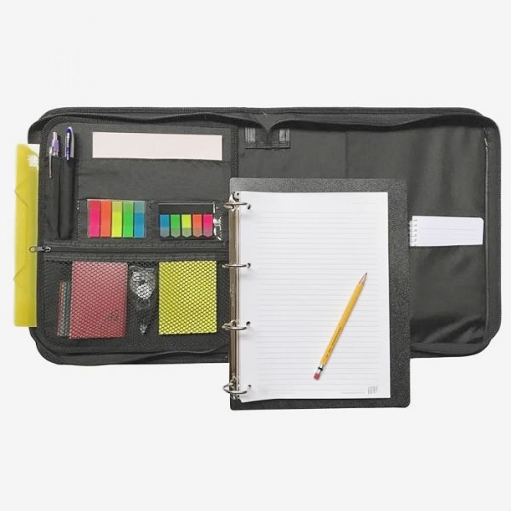 Fichário 4 Argolas Tecido com Zíper e Alça Preto Yes