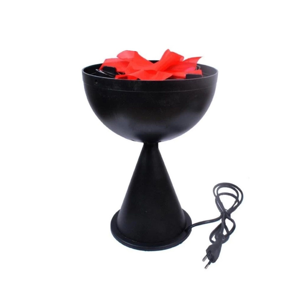 – Composição: Possui 2 Lâmpadas com Luzes Laranja e Vermelha para o efeito da Fogueira, 2 Tecidos para o efeito da fogueira, 1 Cooler para gerar ar para a fogueira e Base em Plástico preto onde ficam fixados os componentes.