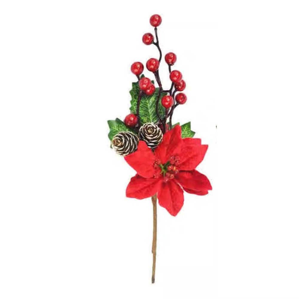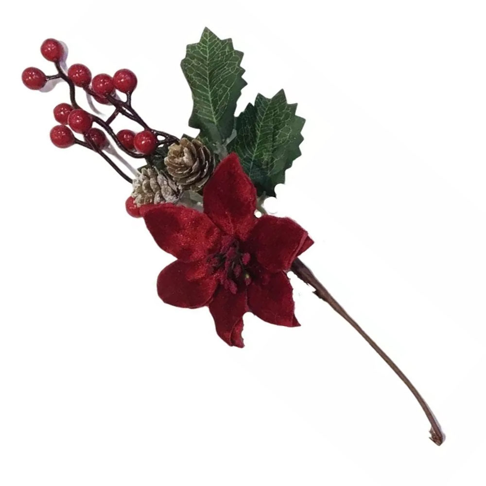 Galho Natalino 30cm Flores Frutas Pinhas Natal Multiart é ideal para decorar os ambientes da casa, para comemorar o Natal!