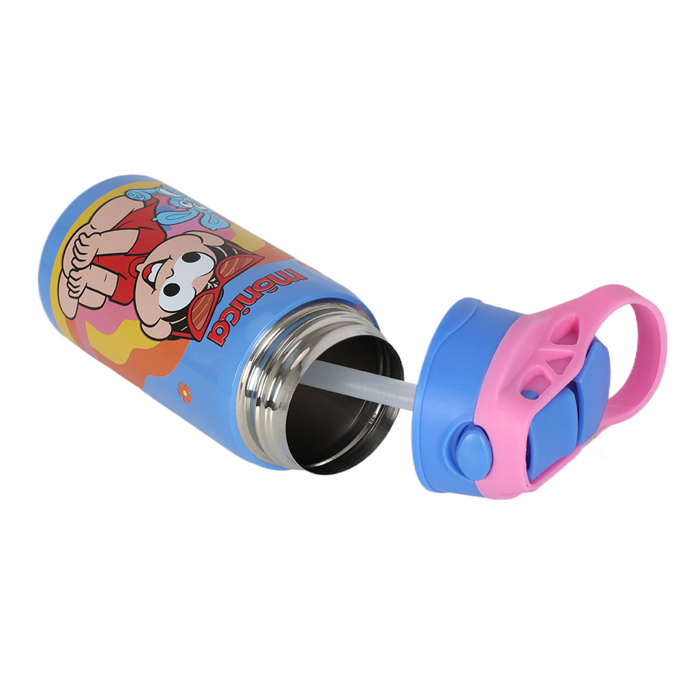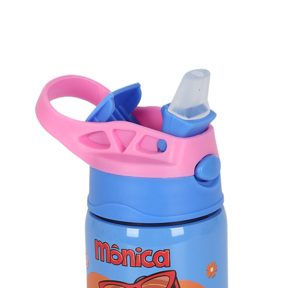 A coleção Turma da Mônica infantil apresenta a garrafa de água em aço inox, com canudo. Desenvolvida para oferecer praticidade e segurança no dia a dia, conta com tampa externa de rosquear com alça de mão para facilitar o transporte e tampa interna com botão à vácuo, que garante vedação eficiente e evita vazamentos. O canudo de silicone macio proporciona mais conforto e segurança ao beber. Com capacidade de 500 ml e medidas de 18 x 7 cm, é leve, compacta e fácil de transportar, sendo ideal para a escola, passeios e atividades do dia a dia. Sua estrutura em aço inox garante resistência e durabilidade, mantendo líquidos quentes ou frios por mais tempo. (Não é térmica)