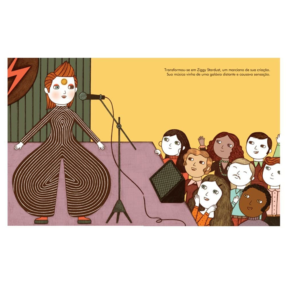 Descubra a vida de personagens famosos: desde desenhistas e artistas até cientistas. Todos eles foram crianças com grandes sonhos e, ao crescer, conseguiram coisas incríveis. Os sonhos podem começar ainda na infância – incentivá-los faz parte da proposta da Coleção “Gente pequena, GRANDES SONHOS”. Crescer com o incentivo de realizar os próprios sonhos é algo que impulsiona o desenvolvimento das crianças. Os livros trabalham a temática com os pequenos ao mostrar a trajetória de mulheres e homens que marcaram a história de alguma forma. E fazer com que as crianças acreditem, desde sempre, que grandes feitos foram, um dia, pequenos sonhos. Quando criança, o jovem David tinha a cabeça cheia de canções e ideias. Ele se inspirou nas cenas pop e rock na Grã-Bretanha para pegar o saxofone. Depois de ganhar suas faixas em algumas das bandas mais legais de Londres, David mergulhou na cena solo. Seu talento como compositor e habilidade musical o tornaram um dos maiores artistas de todos os tempos do rock and roll. Este livro comovente apresenta ilustrações elegantes e peculiares e fatos extras na parte final, incluindo uma linha do tempo biográfica com fotos históricas e um perfil detalhado da vida do músico.
