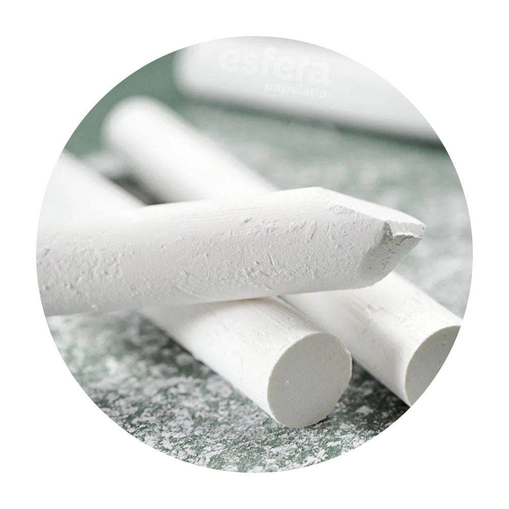 Feito à base de carbonato de cálcio, este giz redondo é fabricado com verdadeiro giz da região de Champangne, França. Pensados para o uso em lousa. Este giz, não faz pó e é dermatologicamente testado, não arranha o quadro deixando uma linha limpa e precisa.