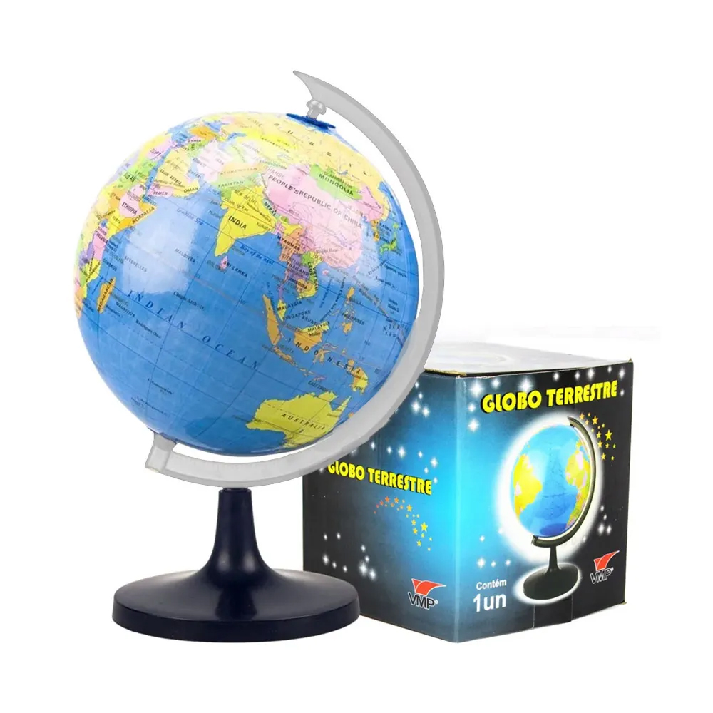 O Globo Terrestre 10,5cm Azul é um item indispensável para quem ama geografia e deseja decorar seu ambiente com estilo. Com um tamanho compacto de 10,5 cm de diâmetro, este globo é ideal para ser colocado sobre mesas, prateleiras ou em qualquer espaço que você deseje trazer um toque educacional e decorativo. Feito com detalhes precisos, o globo apresenta a representação clara dos continentes, países e oceanos, sendo perfeito para ensinar crianças ou simplesmente para satisfazer a curiosidade sobre o nosso planeta. Seu fundo azul vibrante destaca os detalhes geográficos, tornando-o visualmente atraente e funcional. Além disso, é uma excelente ferramenta educativa para jovens estudantes, ajudando-os a entender mais sobre a geografia global de uma forma interativa e visual. Compacto e leve, o Globo Terrestre Azul pode ser facilmente transportado e posicionado em diferentes ambientes. Seja para fins decorativos, educativos ou até mesmo para presentear, este globo terrestre oferece qualidade e precisão em um design elegante.