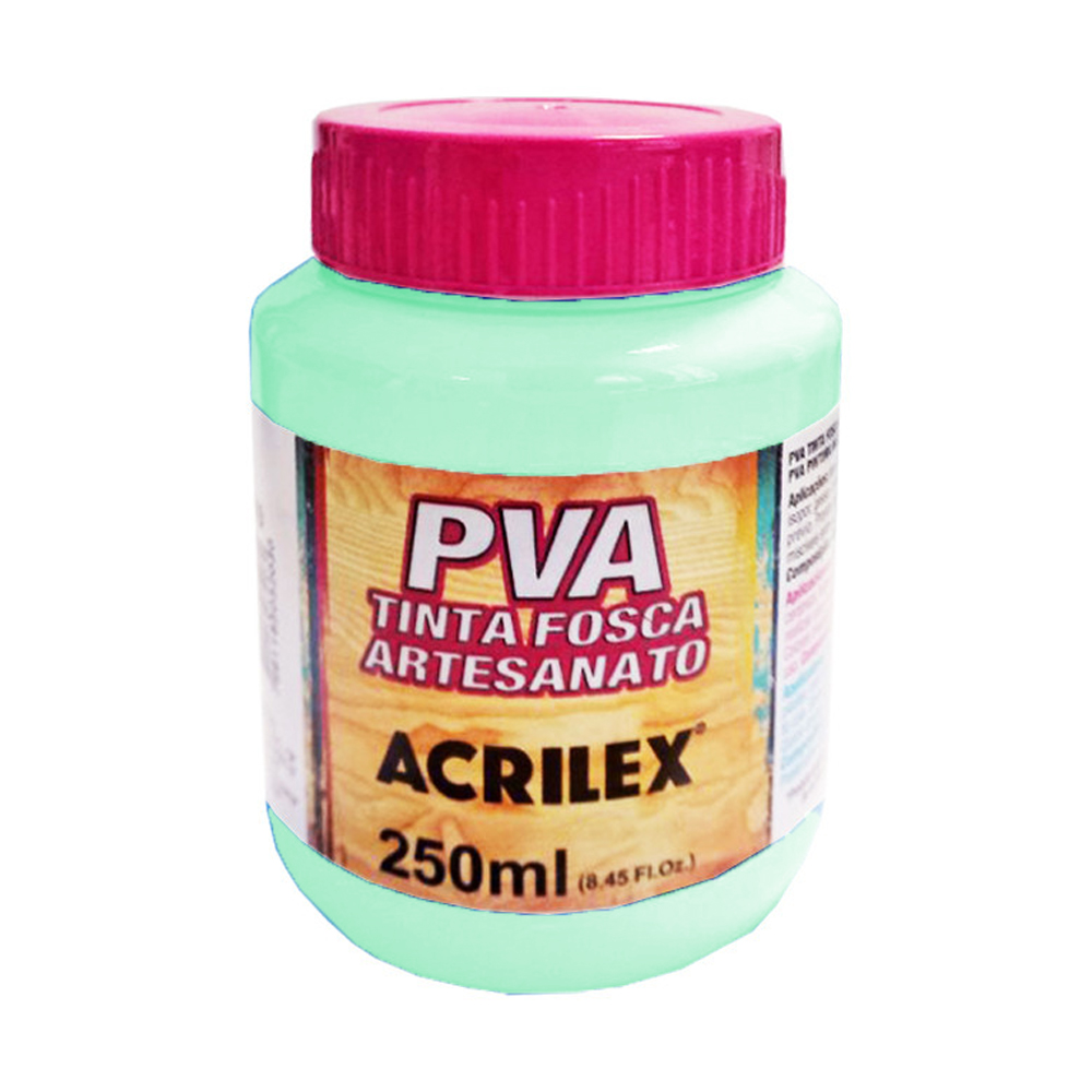 A base de Látex P.V.A. Secagem rápida. Acabamento fosco. Pronta para uso MODO DE USAR Pode ser aplicada com pincel, esponja ou rolinho de espuma. AUXILIARES Diluente: água. Gel para Matizar, Médium Acrílico, Verniz Acrílico, Lacas, Acrilfix e Base Acrílica para Artesanato. Ideal para trabalhos artesanais sobre madeira, gesso, MDF, cerâmica, cortiça, isopor, papel, palha e PET (preparado antes com Primer Acrilex).