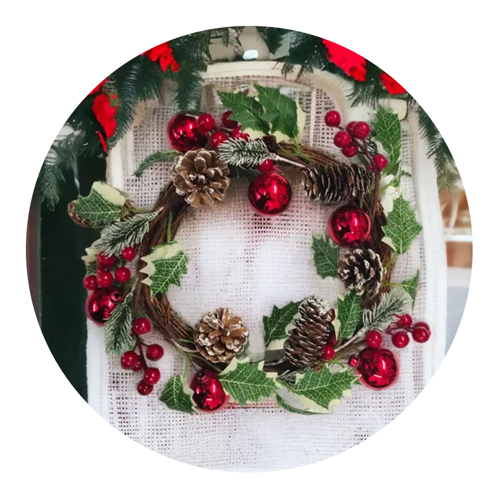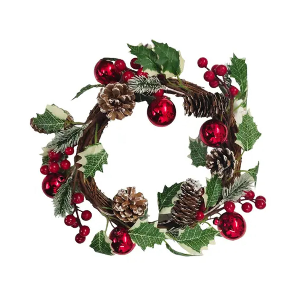 Guirlanda Natalina 24cm Folhas, Pinhas e Bolinhas Multiart