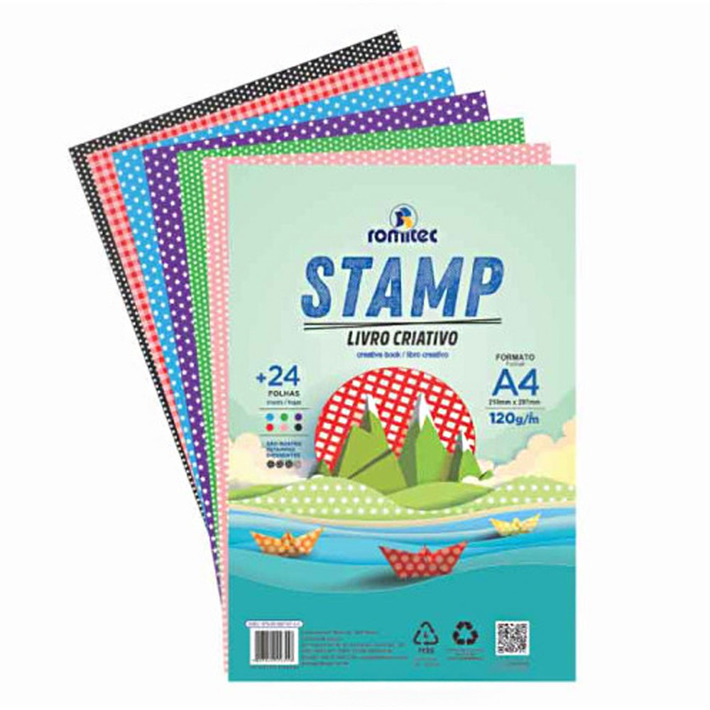 Bloco criativo estampado a4 24fl 120g 06cores