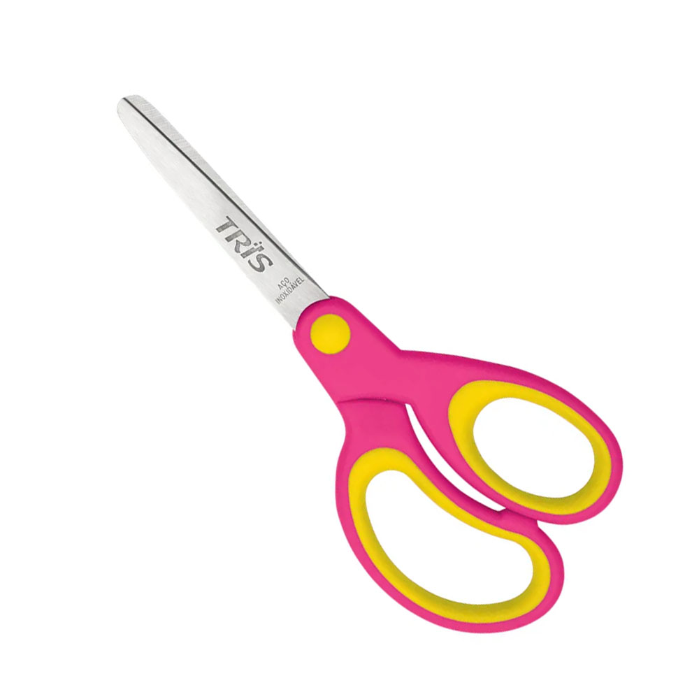 A tesoura Tris Comfort é feita com lâmina de aço inox e ponta arredondada. Cabo emborrachado com péga mais macia. Indicada para uso escolar.