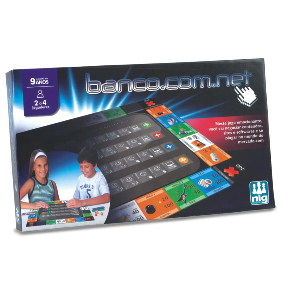 No jogo Banco da Nig o “investidor” vai aplicar seu dinheiro comprando e vendendo itens de programação como softwares, sites e conteúdos como músicas, jogos e antivírus, já que vender e comparar imóveis não é mais o melhor negócio é hora de partir para novos rumos! Na dinâmica do tabuleiro, cada um recebe $1.000 iniciais e disputa com a BANCA e com seus adversários as melhores oportunidades para preencher seu programa de computador e vencer esta disputa. Está pronto para dominar o mercado da informática?