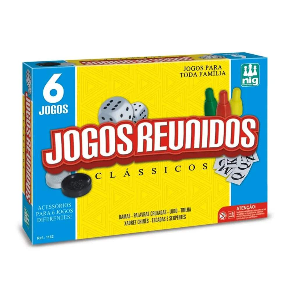 6 Jogos Reunidos Clássicos Nig Damas, Trilha, Ludo, Palavras Cruzadas, Escadas e Serpentes e Xadrez Chinês.