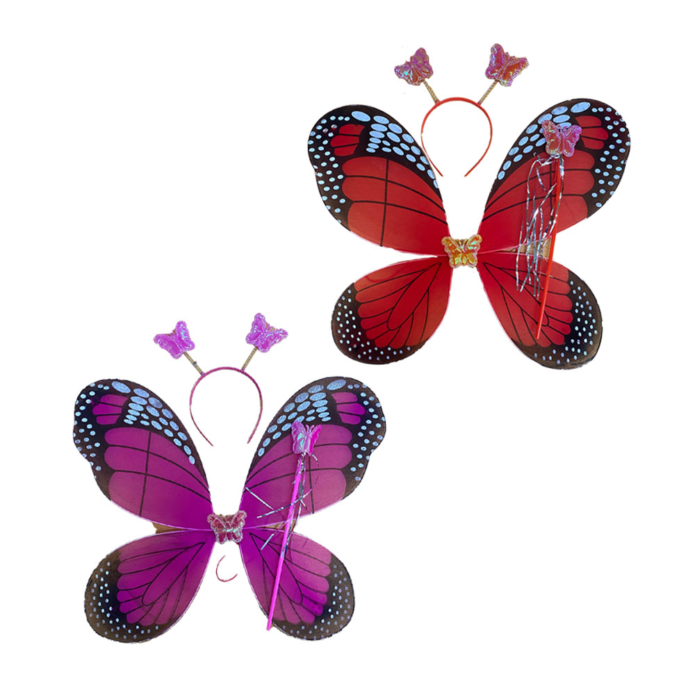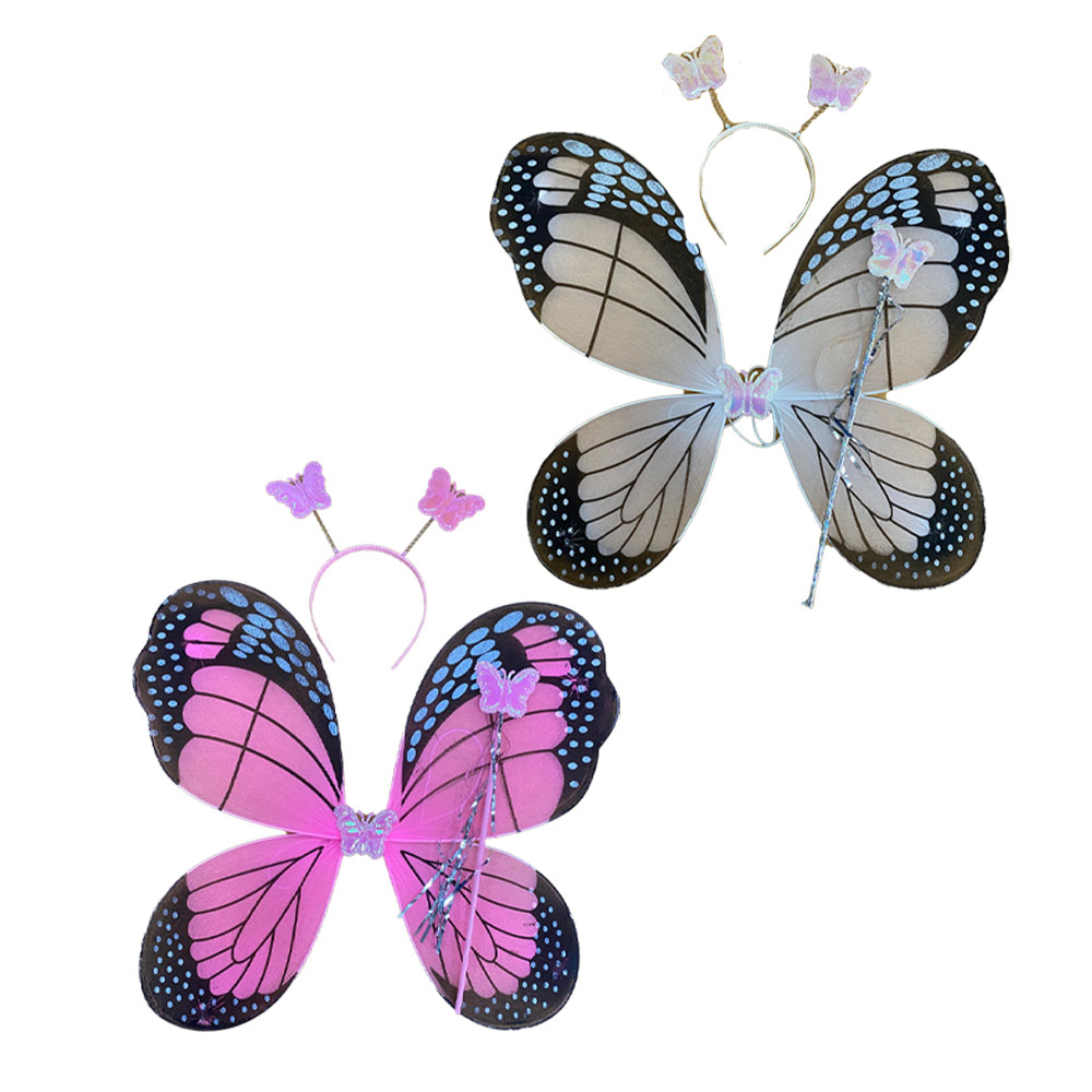 Contém: 1 Asa de Borboleta, 1 Tiara com Borboletas e 1 Varinha de Borboleta