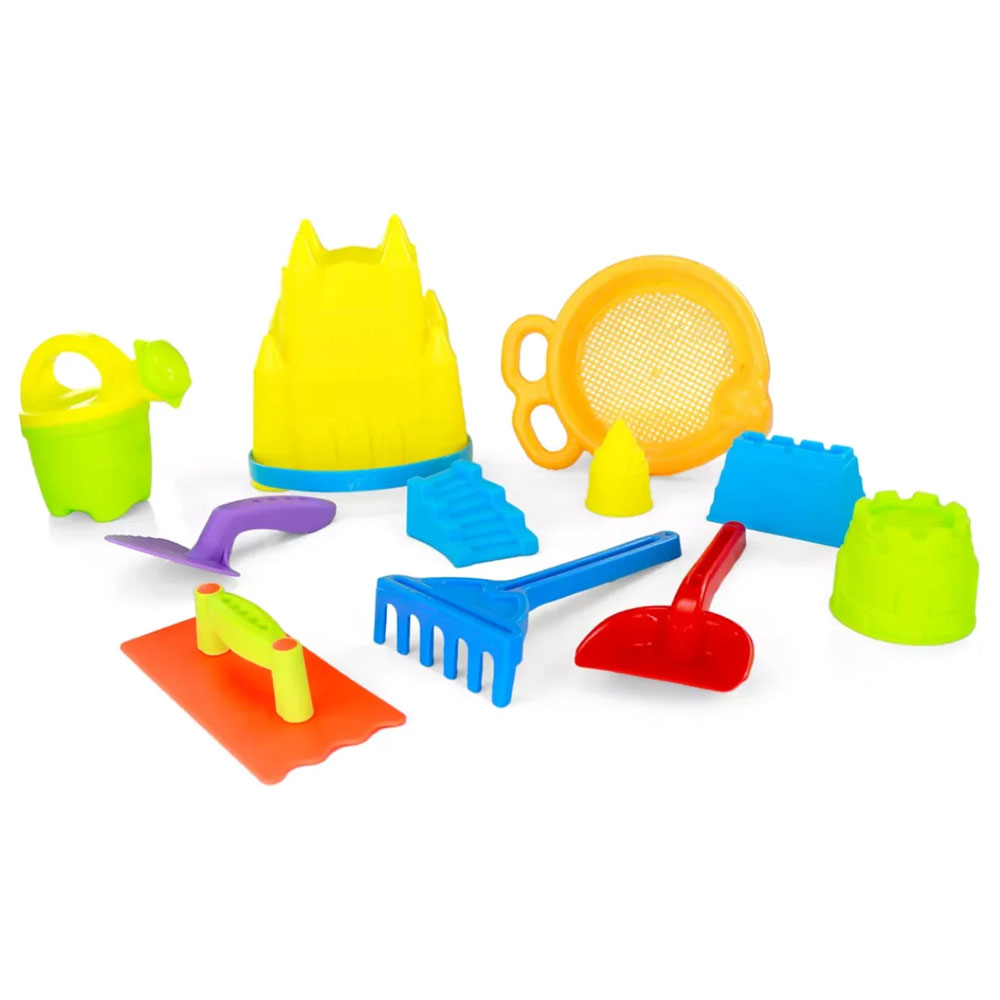 Composição do Kit: 11 peças, incluindo moldes, pás e acessórios para cavar e construir.