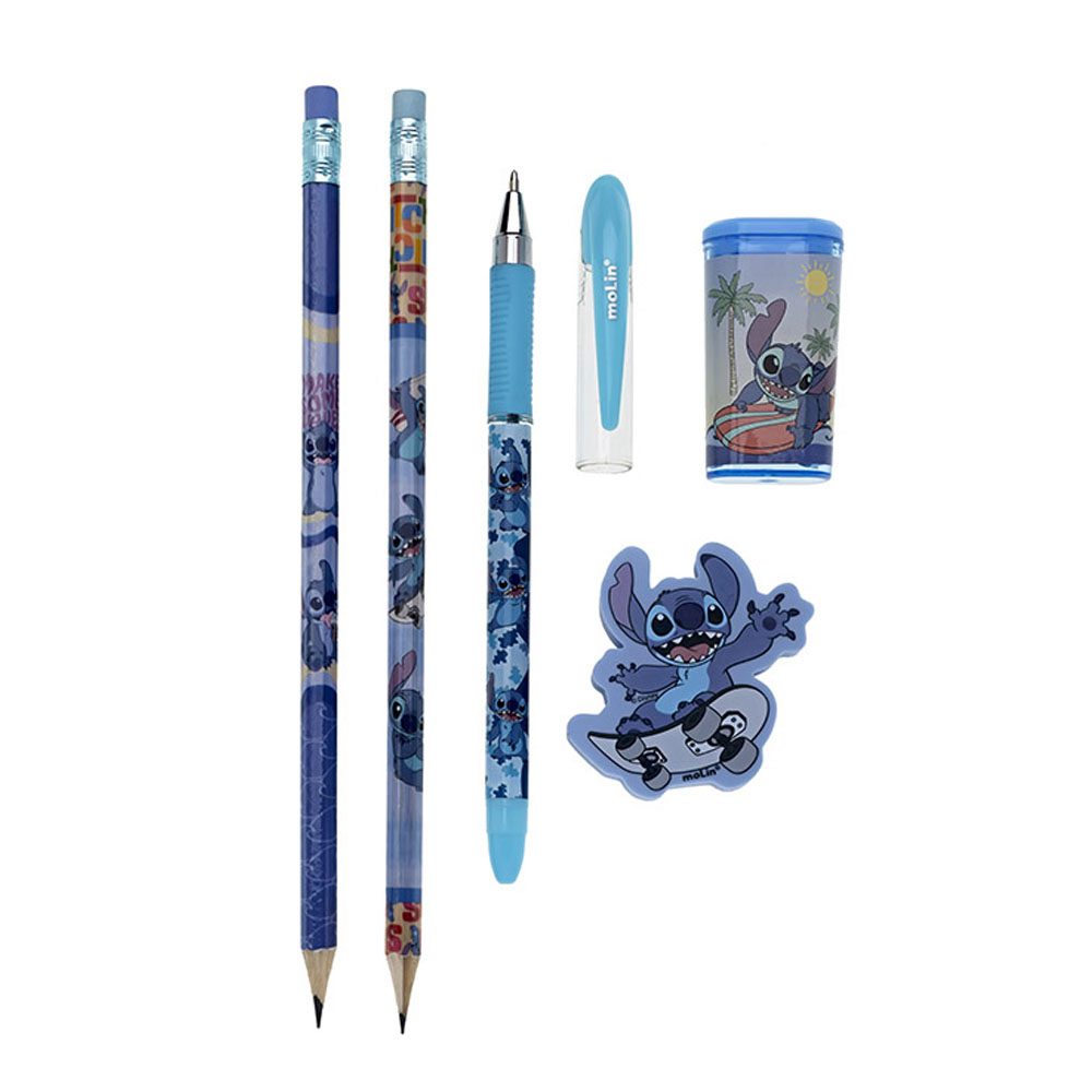 Kit escolar c/05pcs stitch azul 26