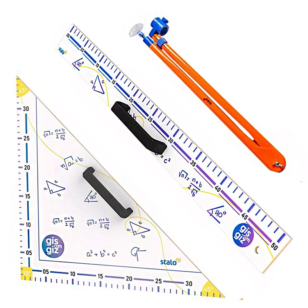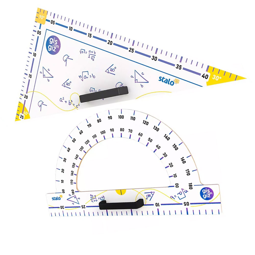 Os Instrumentos Geométricos da Stalo foram desenvolvidos para serem usados por professores nas mais diversas lousas e quadros escolares. Toda a linha de instrumentos geométricos possui pegadores plásticos para melhor usabilidade. São fabricados em MDF de 5,2 mm com impressão e acabamento 100% UV.