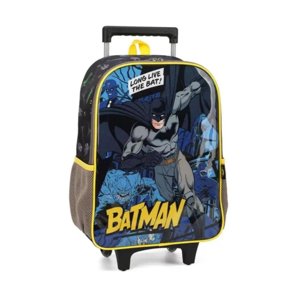 Kit Mochila Rodinhas c/ Alça + Lancheira Batman Preto Luxcel