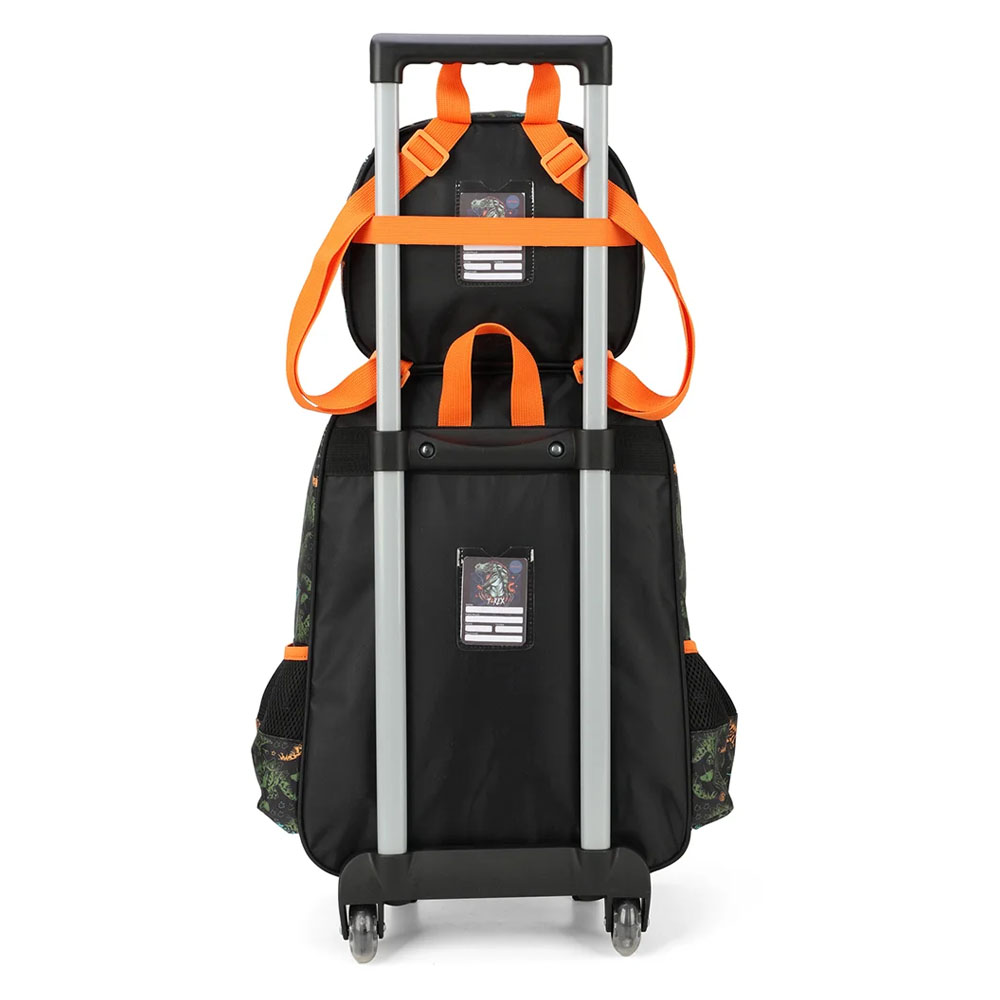 Mochila Rodinhas 16 c/ Lancheira T-REX Preto/Laranja Luxcel
