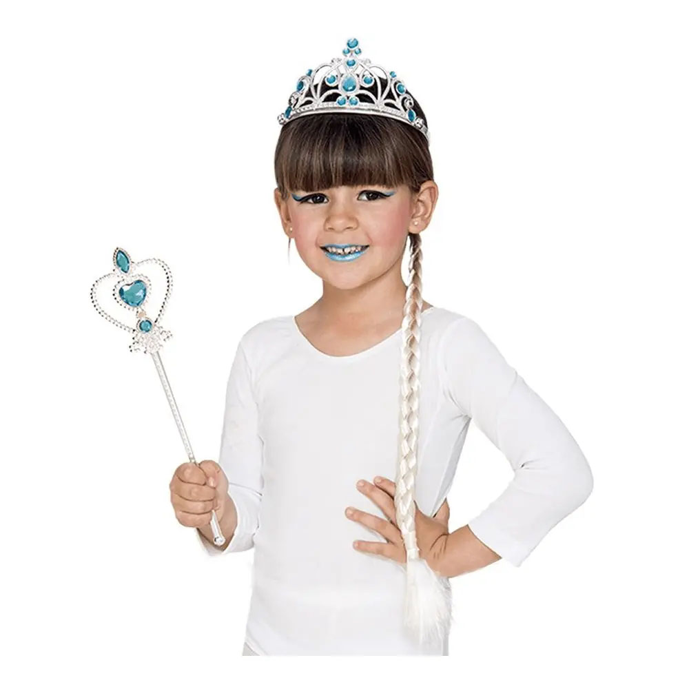 Kit Tiara com Trança e Varinha Princesa Gelada Fantasia