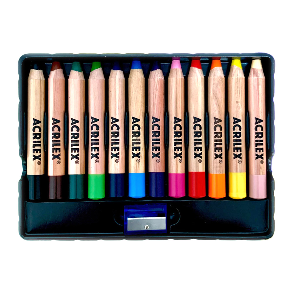 O Lápis De Cor Jumbo 12 cores Acrilex É Ideal Para Escrever E Desenhar, Permite Um Traço Macio E Uniforme, Não Tóxica!