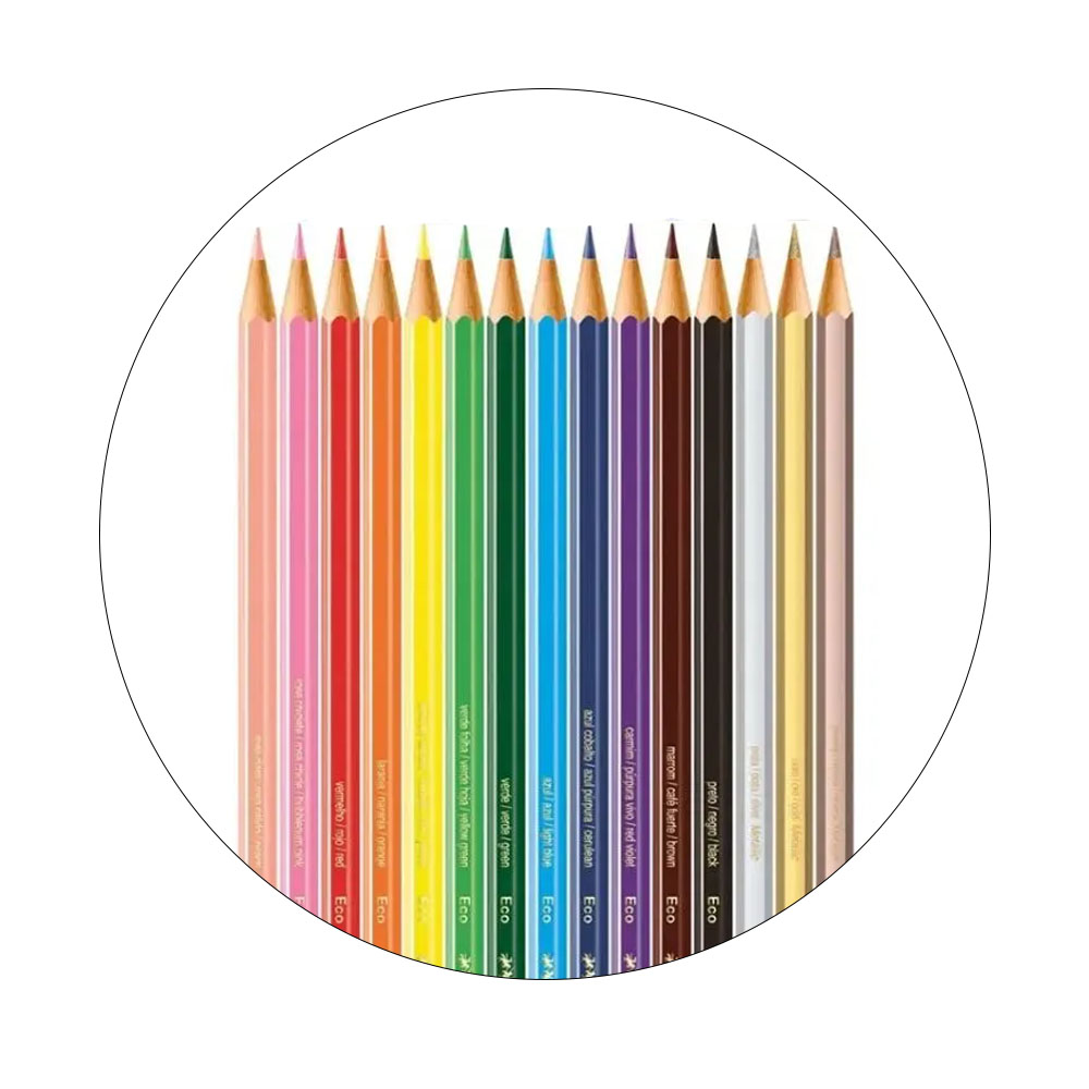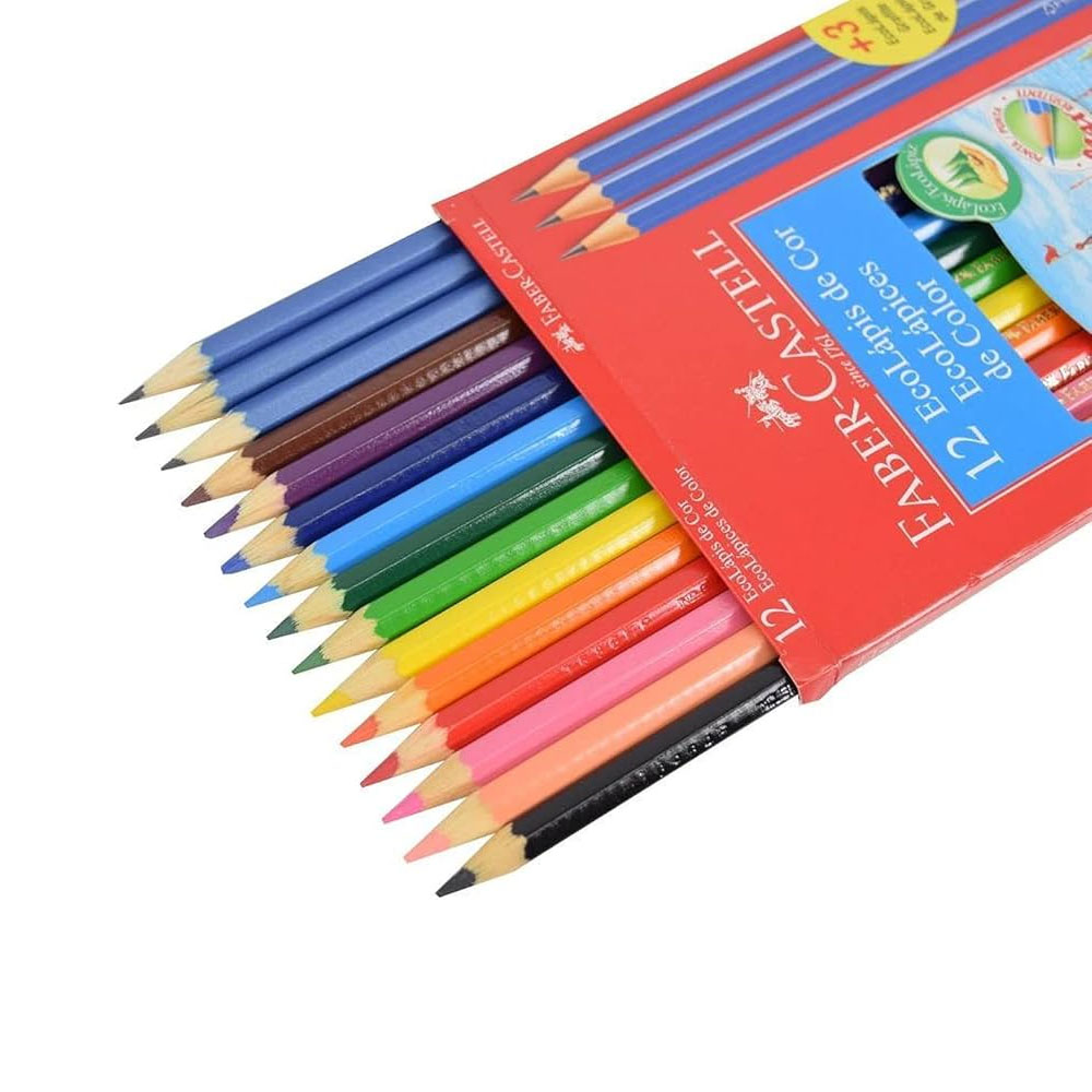 Contém: 1 caixa com 12 Cores + 2 Ecolápis Grafite + 1 Apontador + 1 Borracha