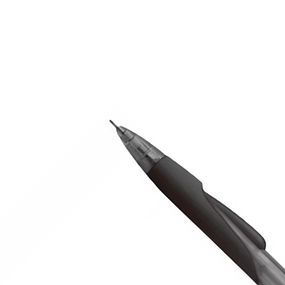 Lápis mecânico com linha de 0,5 mm de largura. A ponta é obtida pressionando repetidamente o botão superior ou pressionando o botão lateral ou sacudindo o lápis para cima e para baixo. Detalhes do produto.