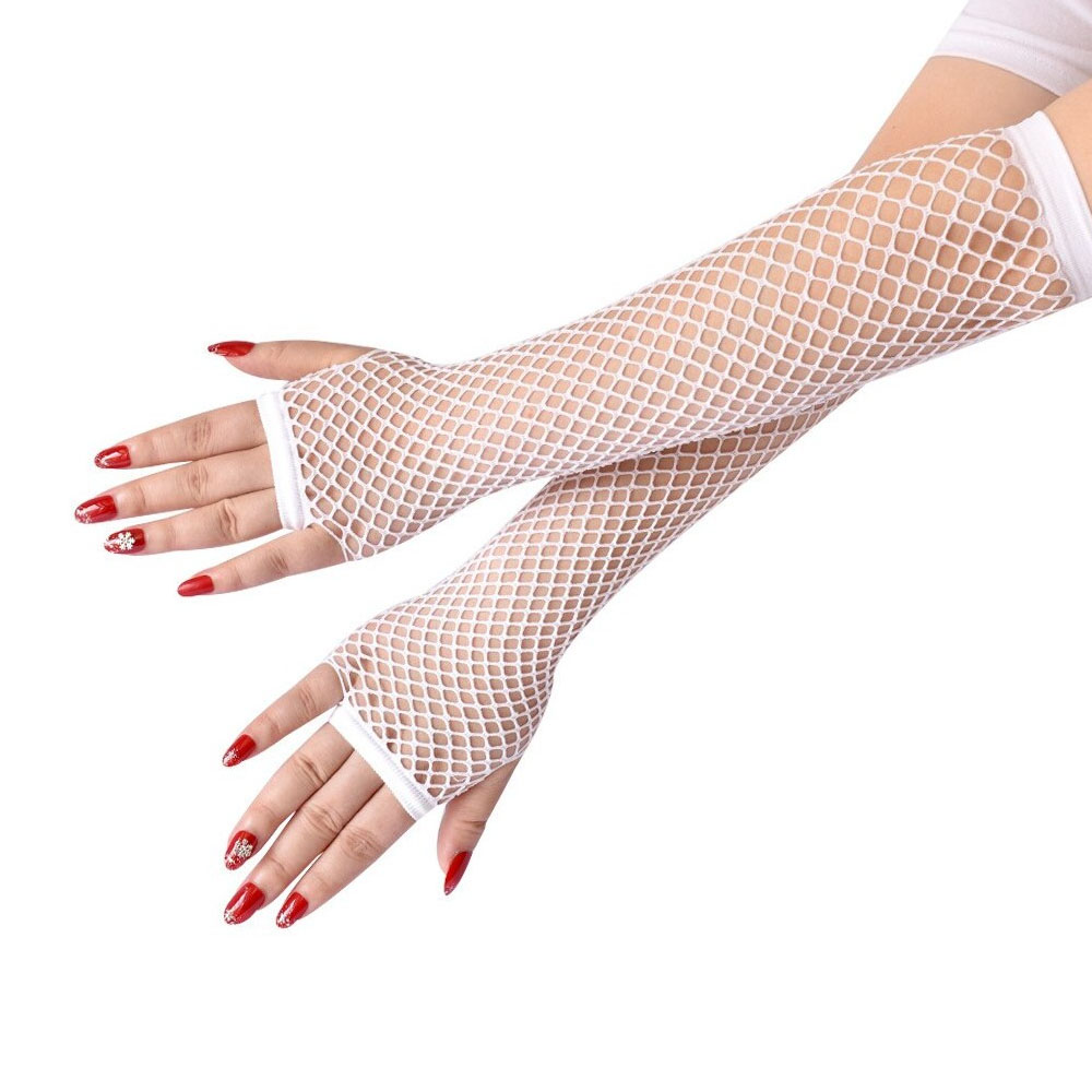 Luva Arrastão Longa Sem Dedo Branco Fantasia Halloween