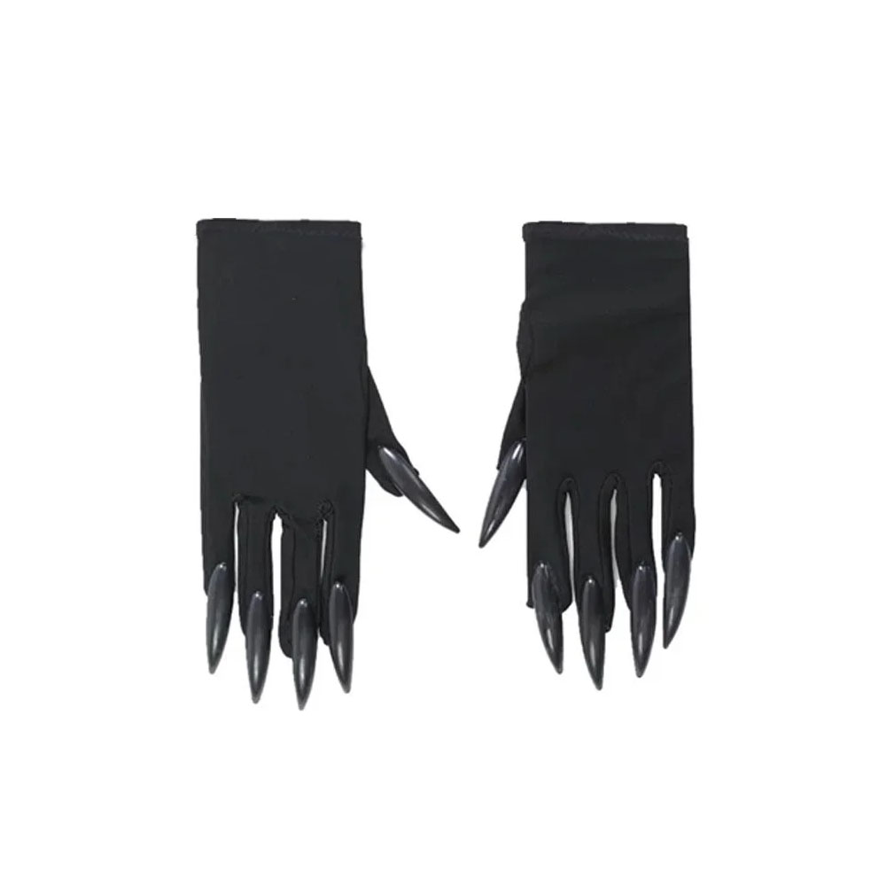 Luvas de Helanca Curta com Unhas Preto Fantasia Halloween
