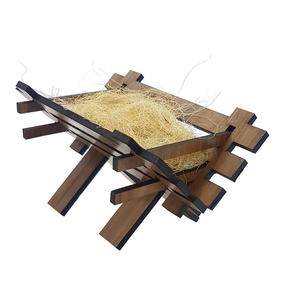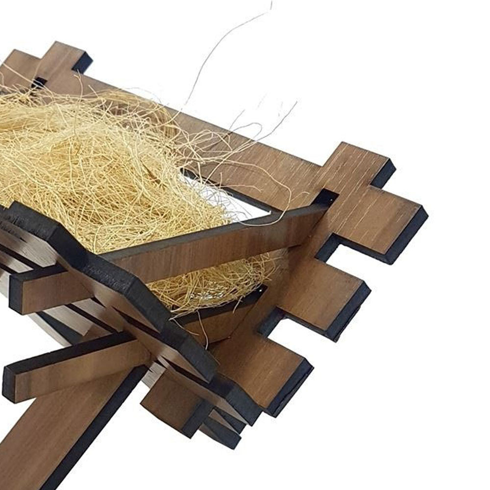 Manjedoura p/ Menino Jesus Presépio 20cm Madeira Iracema