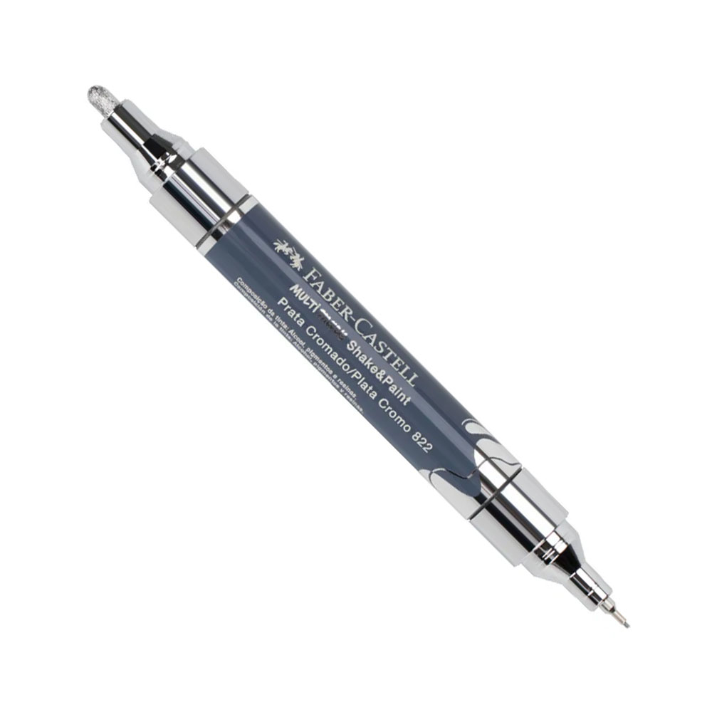 A base do marcador Cromado é álcool e garante um efeito chamado “espelho”. Possui duas pontas: 0.8mm para traços finos e detalhes, 2.5mm ideal para preenchimento. As pontas são estruturadas para grande durabilidade e proporcionar firmeza na utilização. Marcador Multisuperfície MultiMark Faber-Castell: 2 em 1