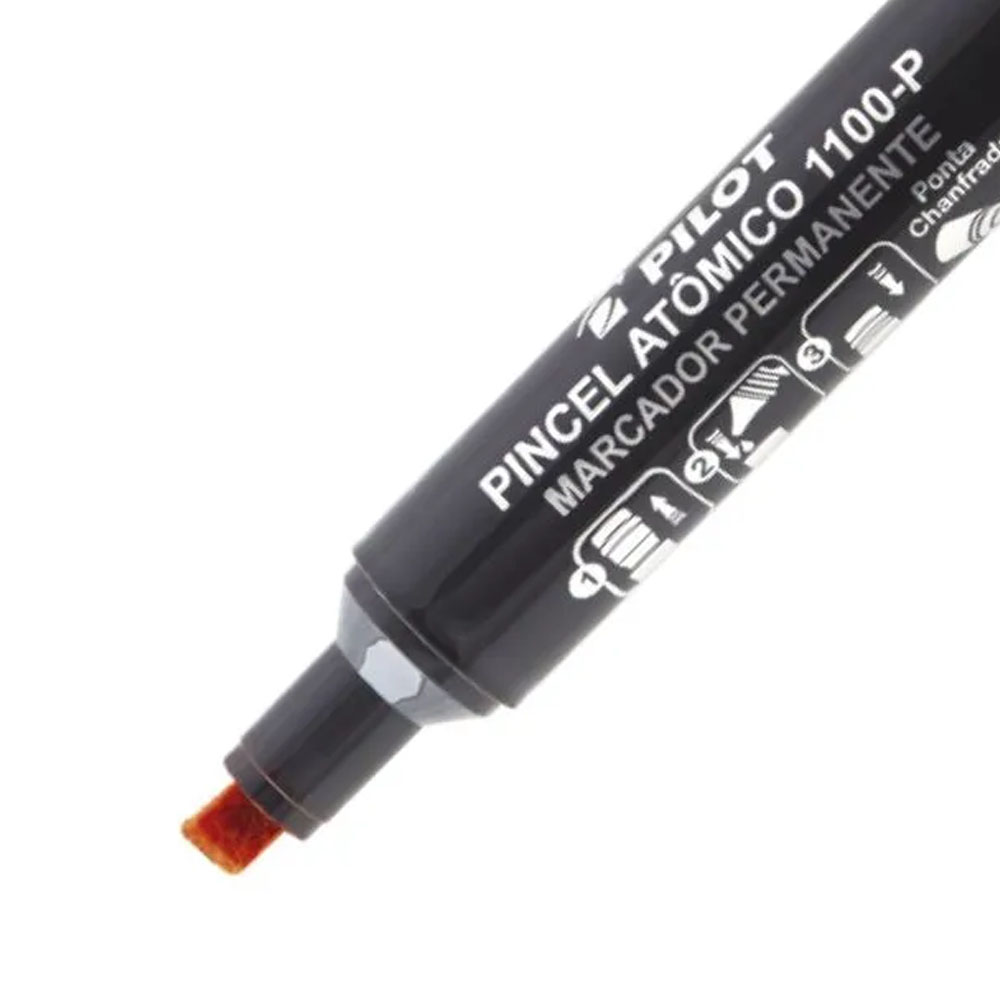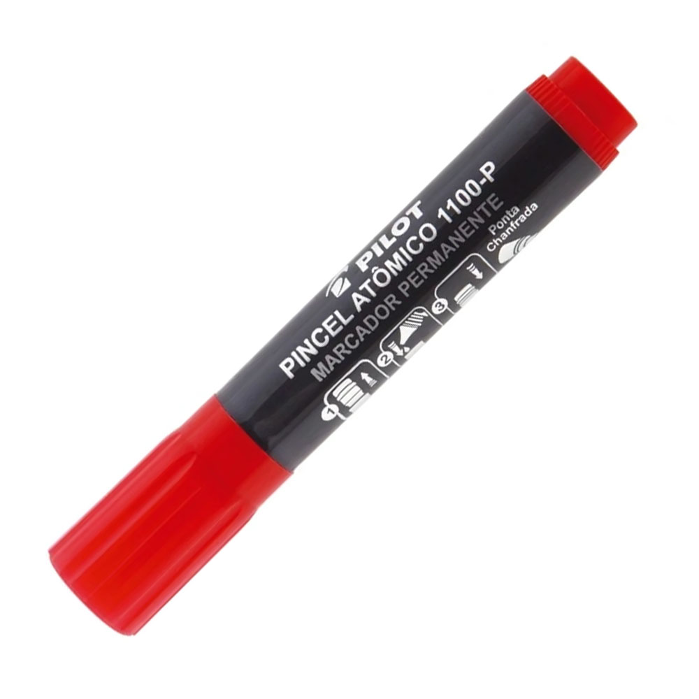 Referência em marcadores no Brasil, o Pincel Atômico apresenta um excelente custo benefício graças as suas diversas funcionalidades e longa durabilidade de sua tinta.Indicado para marcar, escrever e até mesmo desenhar. Possui ponta chanfrada de feltro resistente que não deforma, por isso, é ideal para superfícies rústicas como papelão e madeira. Contudo, também é indicado para o uso em diversos tipos de papéis, cartolina, vidros, metais e plásticos. Sua ponta chanfrada de feltro permite escritas em diferentes espessuras, como 2.0mm, 4.5 mm e 8.0mm. Possui tinta permanente a base álcool e pode ser recarregado com a tinta Pilot TR 37 ou TR 500.