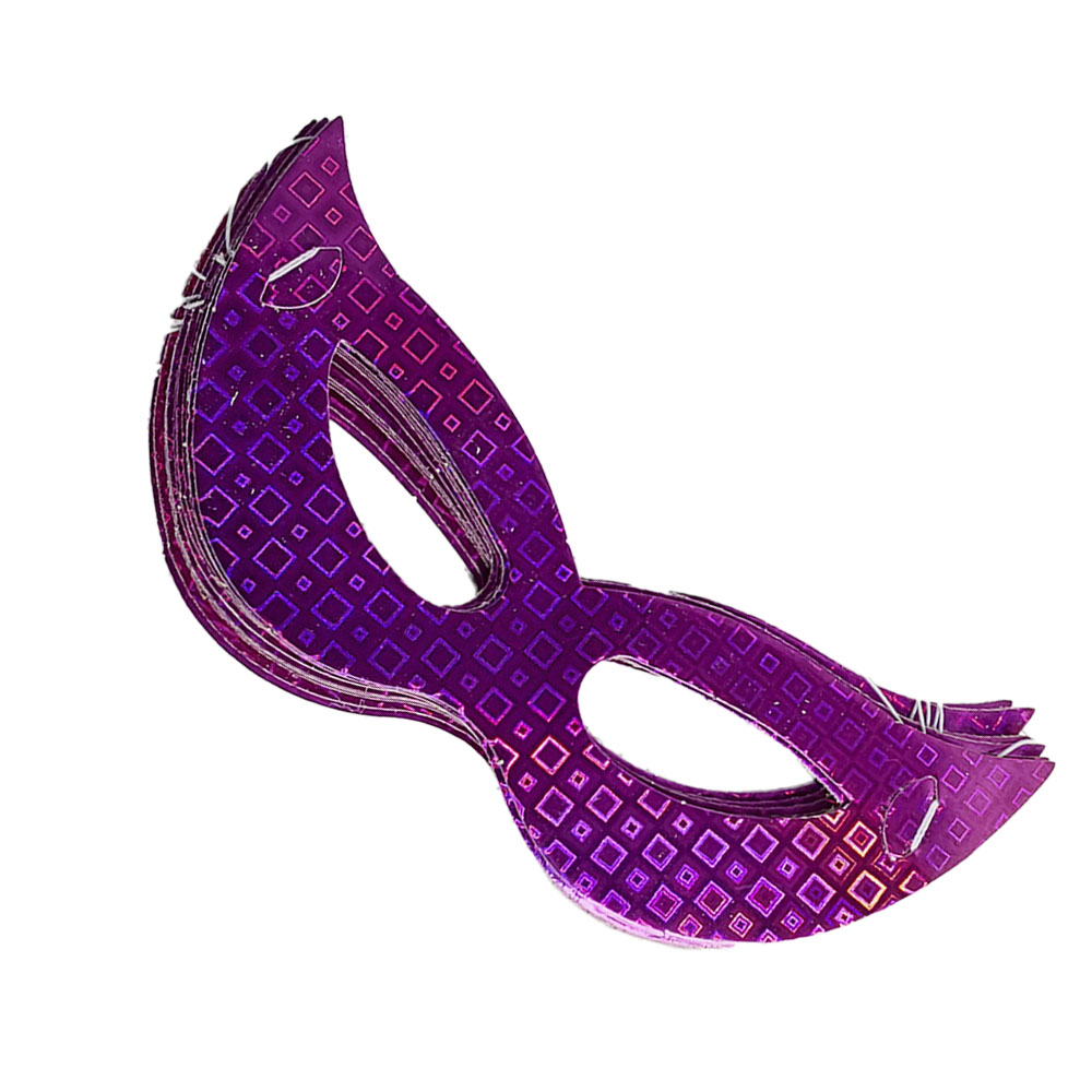 Máscara de Papel Gatinha 12und Holograf Roxa Festa Carnaval