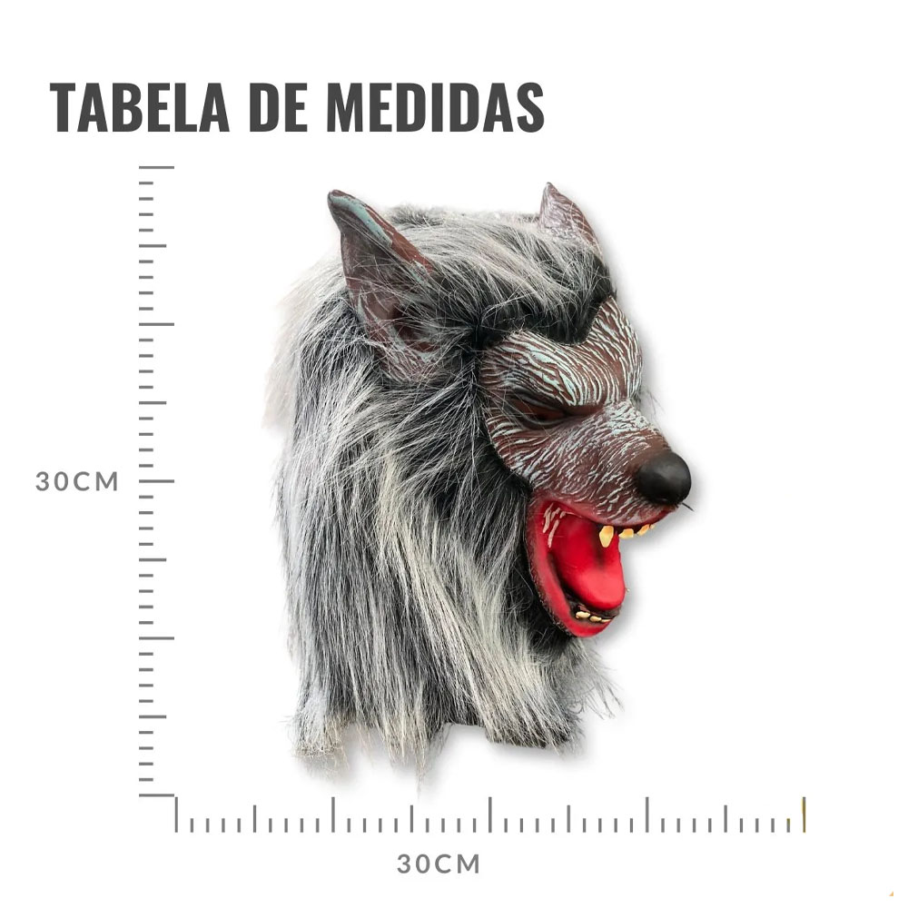 Máscara Borracha Lobo Raivoso c/ Pelo Fantasia Halloween