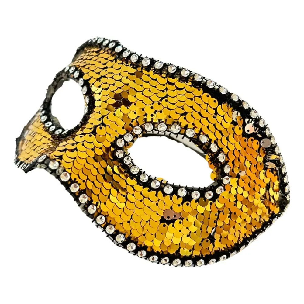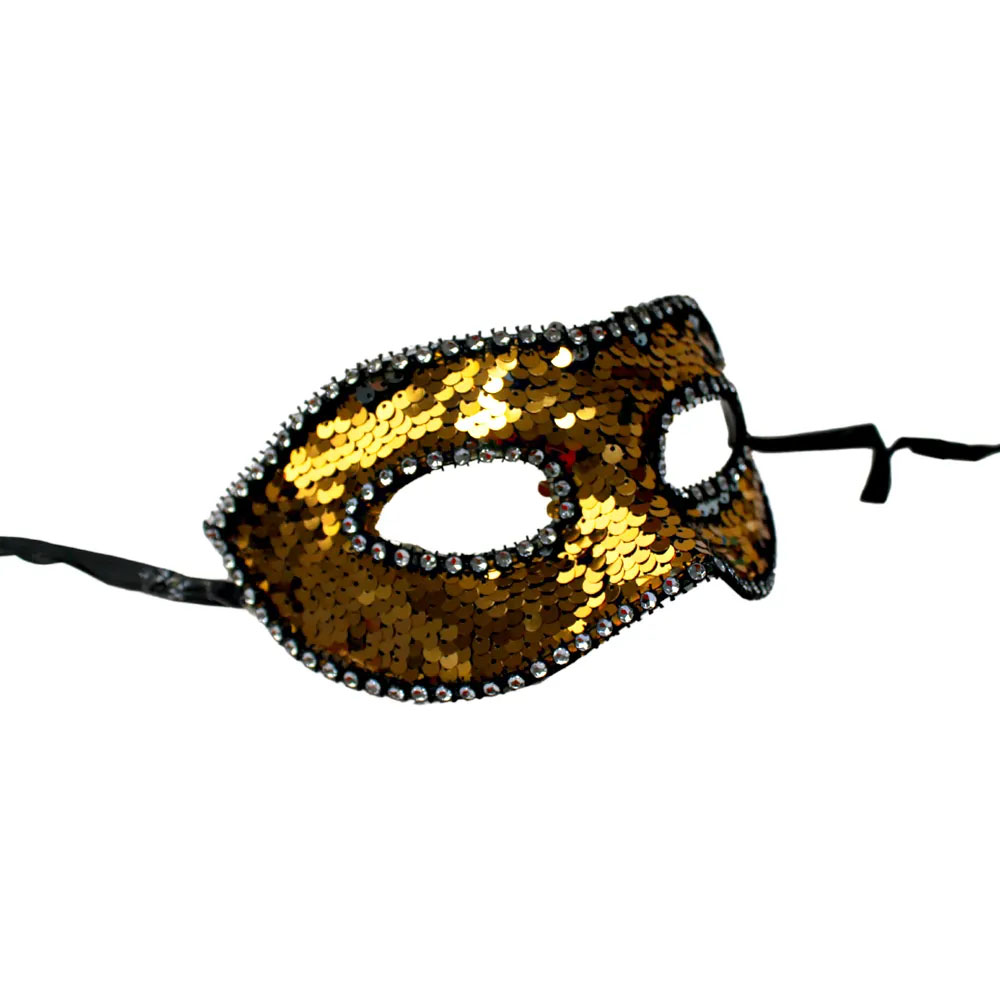 Máscara Veneza com Lantejoula Dourado Preto Luxo Fantasia