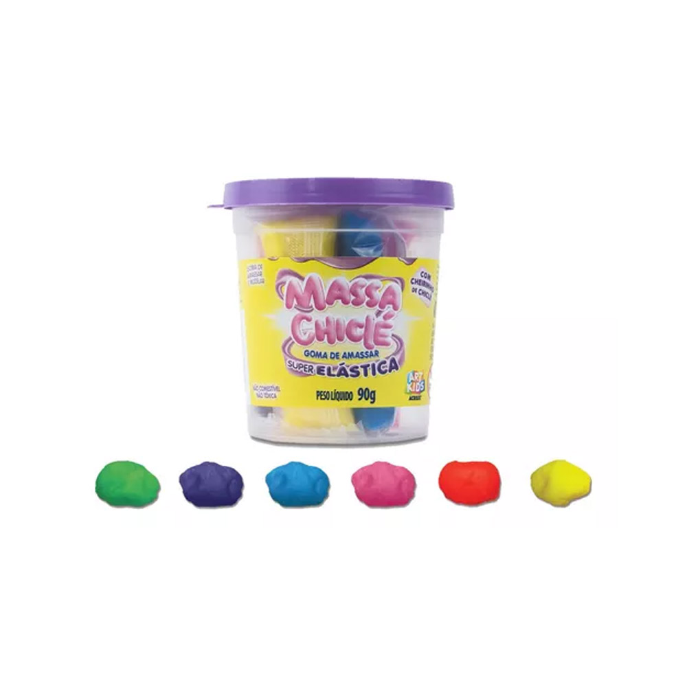 A Massa Chiclé é a nova sensação em massa de modelar. Com textura e consistência de um chiclete de verdade, você pode moldar da forma que desejar, apresenta cores vibrantes que tornam a brincadeira mais divertida. A goma de amassar da Art Kids pode ser utilizada para brincar ou para desestressar, além de divertida, ela é super elástica. Vem com 6 cores embaladas individualmente.