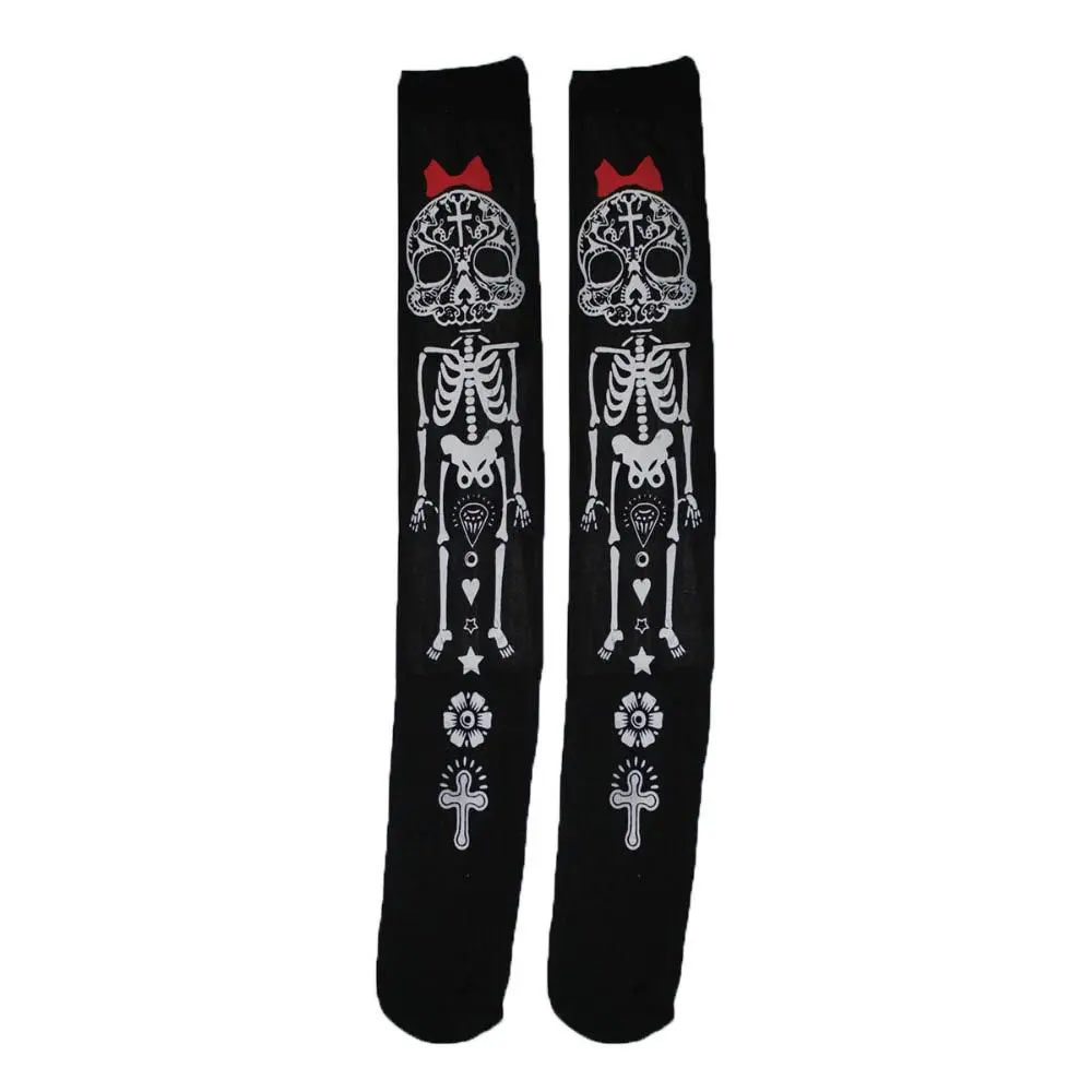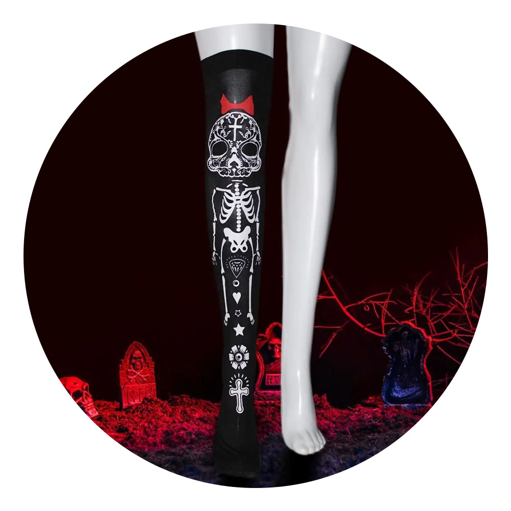 Meia 7/8 Lisa Caveira com Lacinho Preta Halloween