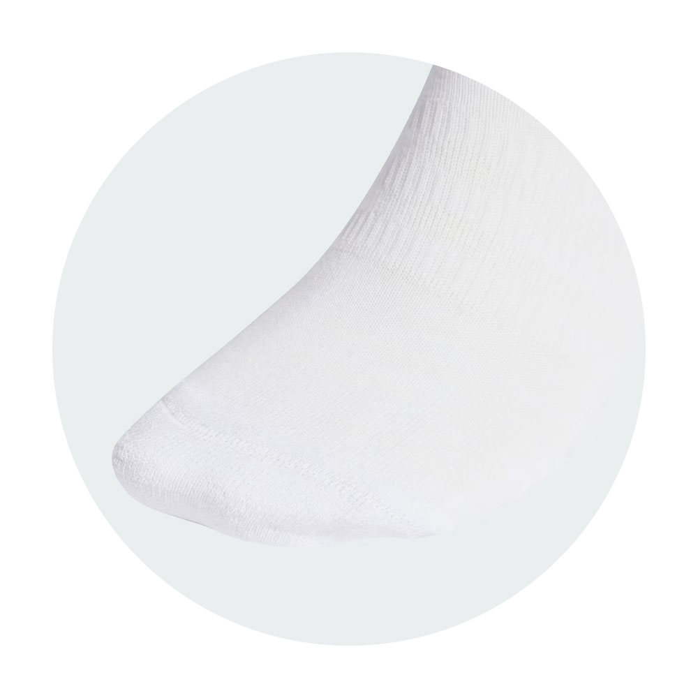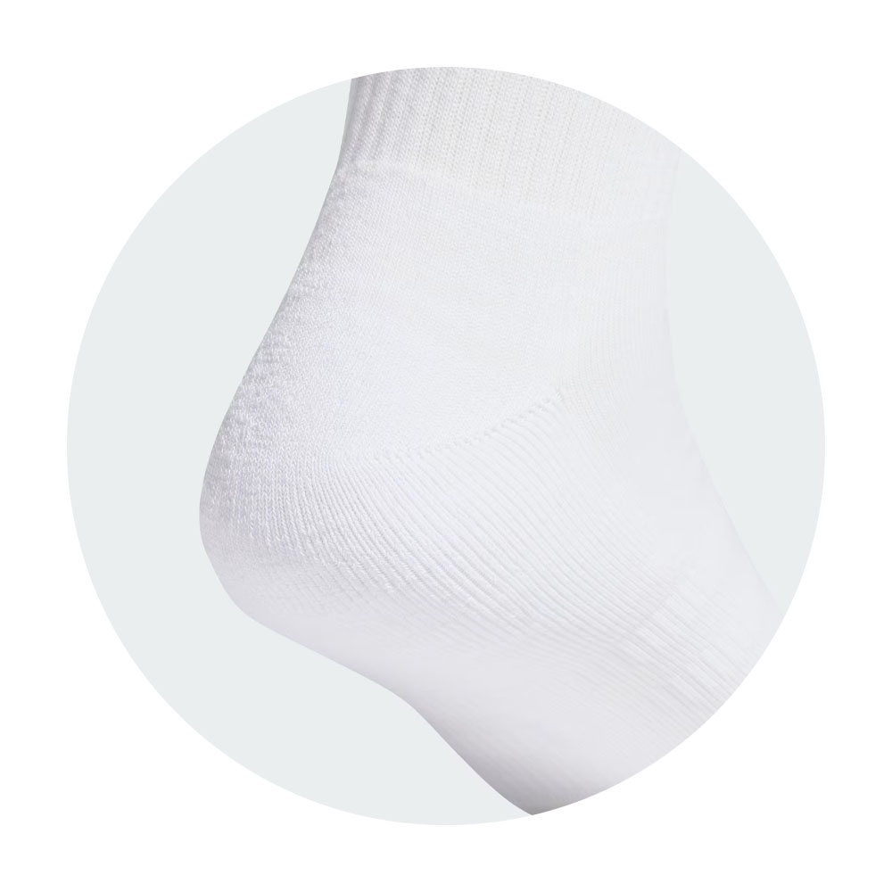 Seja para treinar no dia a dia ou arrasar em um grande evento, estas meias adidas de cano alto garantem o conforto dos seus pés. Elas envolvem o arco do pé e amortecem as áreas de alta pressão nos calcanhares e dedos. Assim, você pode se focar no desempenho, seja correndo, levantando pesos ou praticando esportes em geral. Este produto é composto por, no mínimo, 70% de uma mistura de materiais reciclados e renováveis