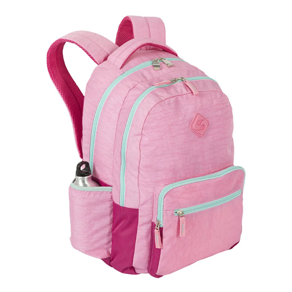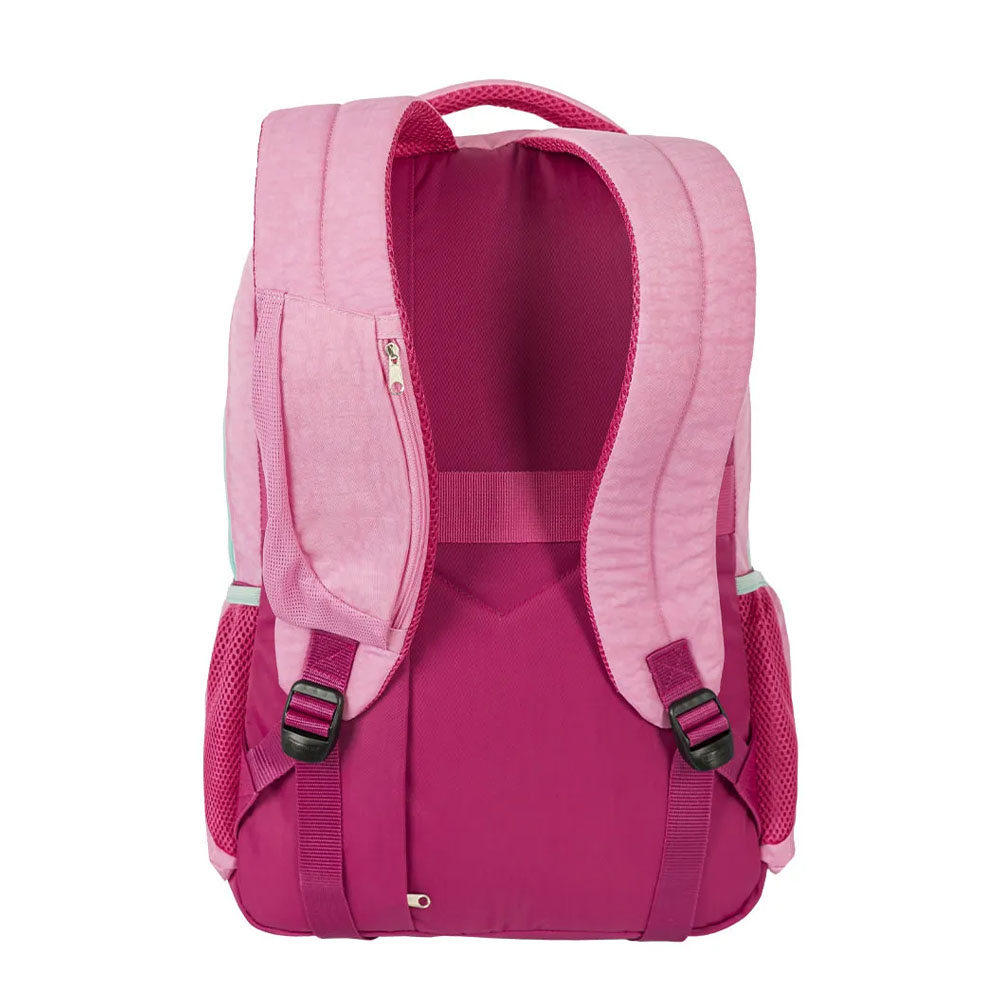 Projetada para otimizar sua rotina se estudos, a Mochila de 2 Compartimentos Sestini College Crinkle 4 – Double Pink é produzida em um resistente nylon em duas cores complementares, com alças de mão e de costas espumadas para conforto, além da alça carona que encaixa no carrinho da sua mala em viagens e passeios.