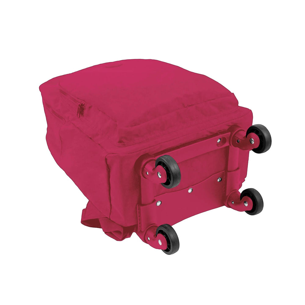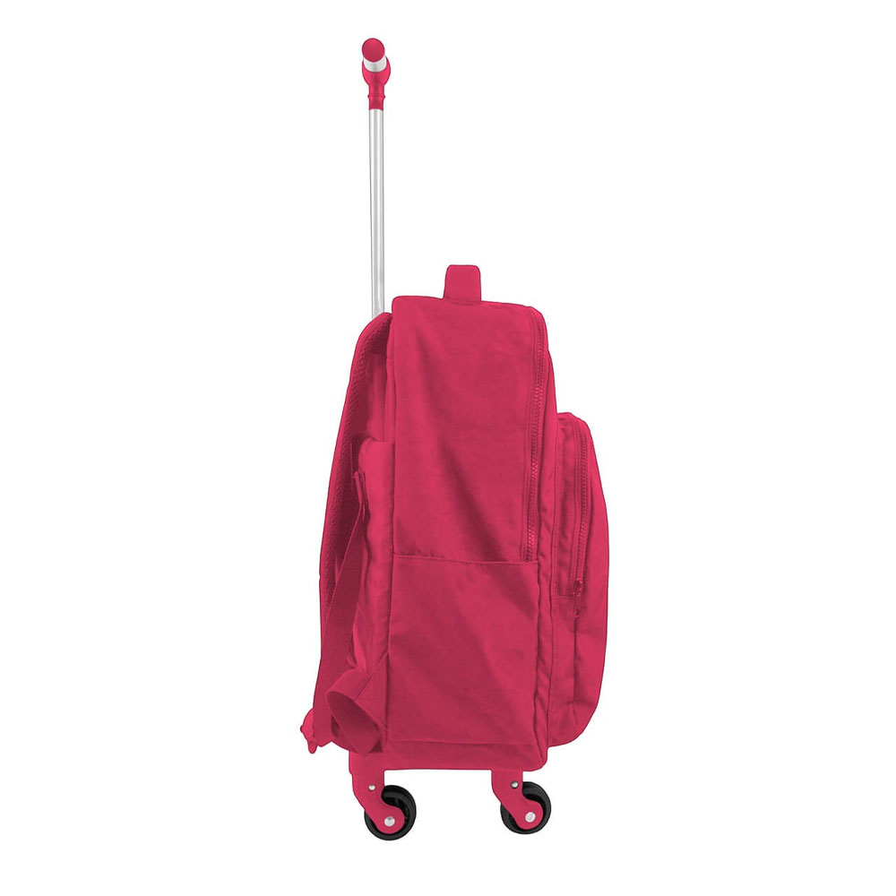 A Mochila de Rodinhas Académie conta com base reforçada, com parte interna forrada e alças acolchoadas. Este modelo tem dois compartimentos, uma abertura principal e um bolso externo, ambos com fechamento em zíper, puxador de metal e rodas 360 graus.
