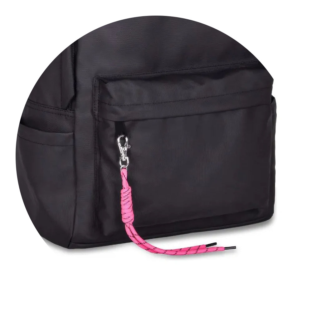 2 bolsos laterais, 1 bolso frontal e 1 compartimento principal espaçoso