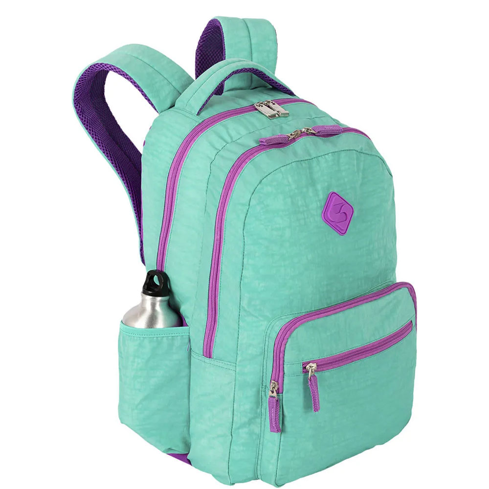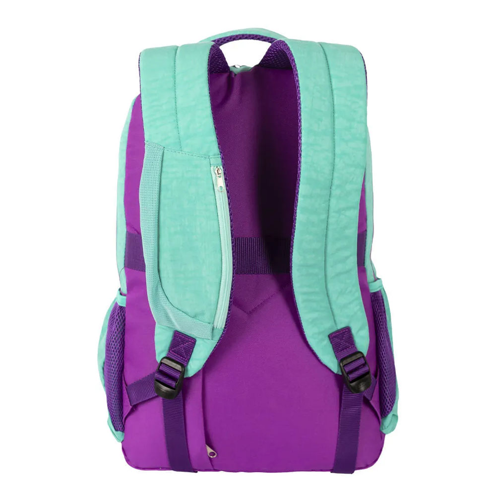 Projetada para otimizar sua rotina se estudos, a Mochila de 2 Compartimentos Sestini College Crinkle 4 – Turquesa e Roxo é produzida em um resistente nylon em duas cores complementares, com alças de mão e de costas espumadas para conforto, além da alça carona que encaixa no carrinho da sua mala em viagens e passeios.