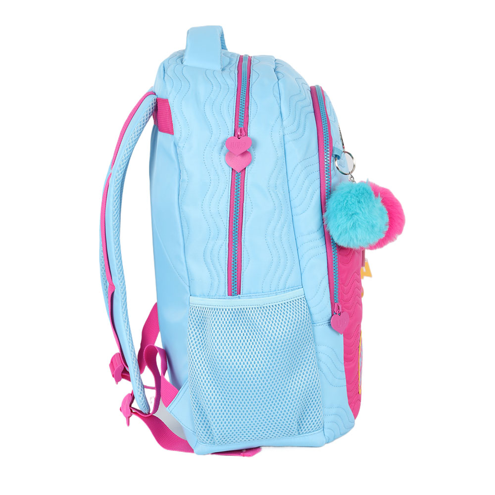 2 Bolsos frontais, 2 bolsos laterais de redinha e 1 compartimento central espaçoso